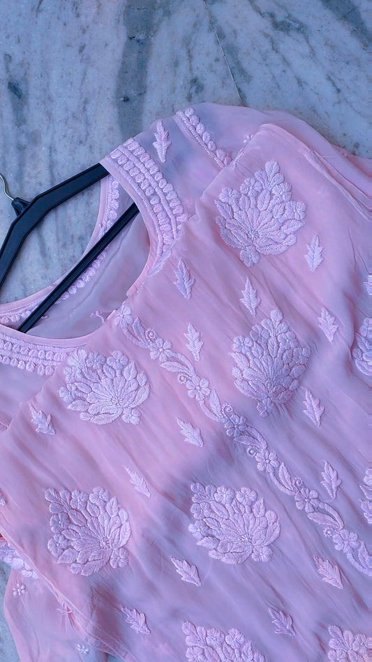 Gulabi Tunic Chikankari Set floral Embroidery And Mukaish