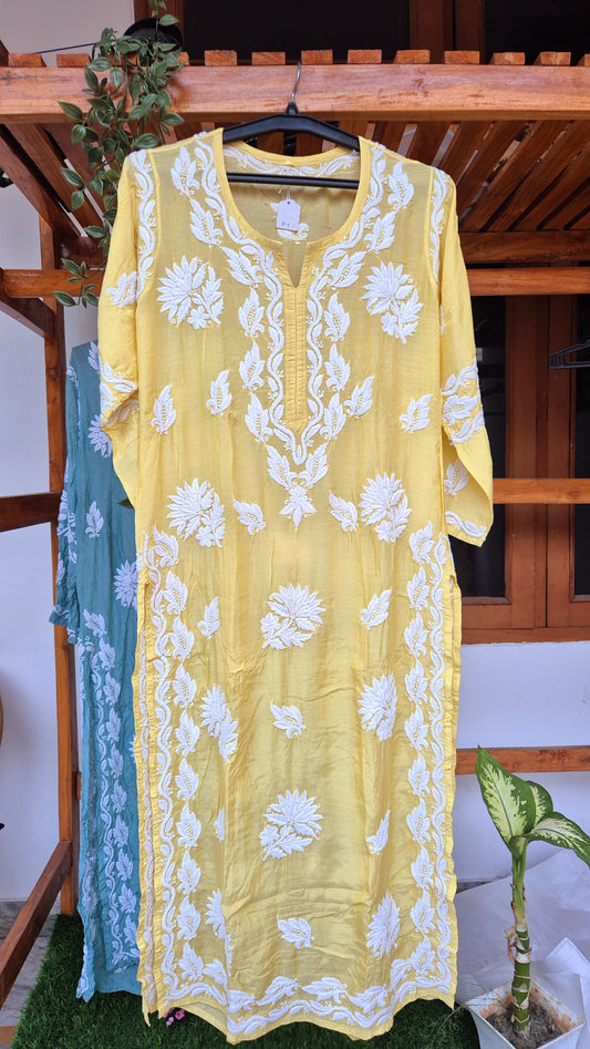 Gulmohar Premium Silk Chikankari Lomg Kurta Pure Handmade