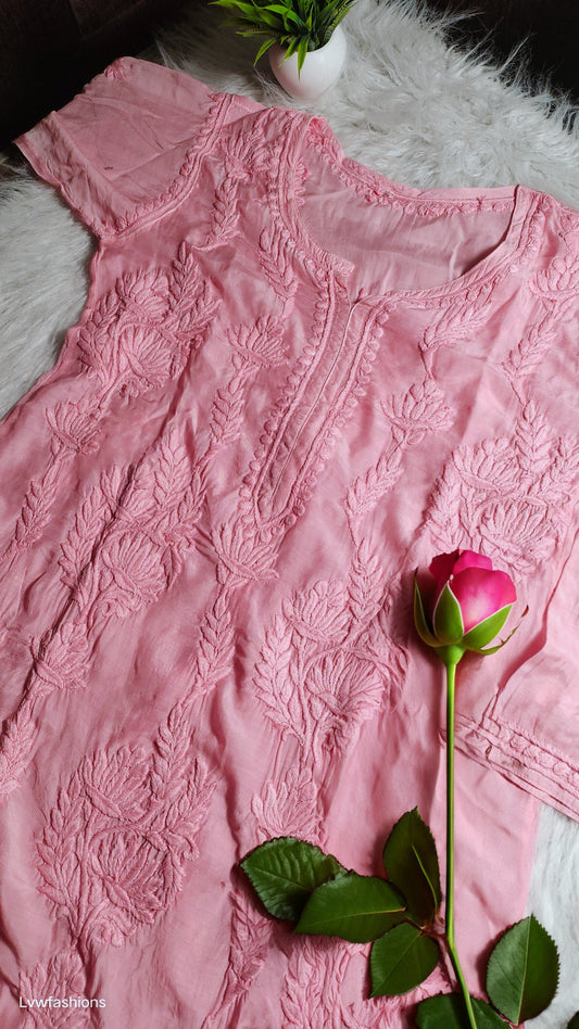 Heavy Pure Handcrafted Embroidery Premium Silk Chikankari Kurti set for Women