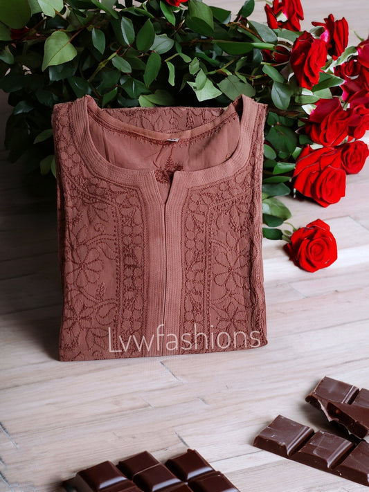 Haniya Kurta Chocolate Shade Premium Georgette Long Chikankari Kurta