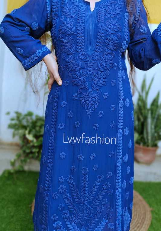 Janiye Metallic blue Premium Silk Chikankari Luxurious Look Kurta