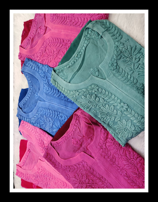Pure Chikankari work What's in the Box: kurta Silk inner Premium Georgette Length: 46" inches...