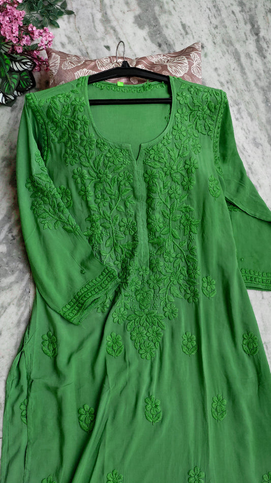 Mughal Green Soft Modal Cotton Chikankari Long Kurta