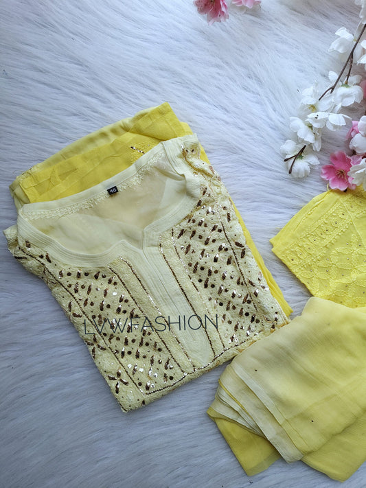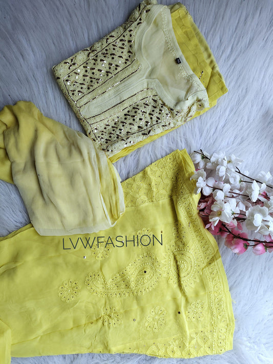 Pure Chikankari work What's in the Box: kurta Bottom Inner Dupatta Premium Georgette Length: 46"...