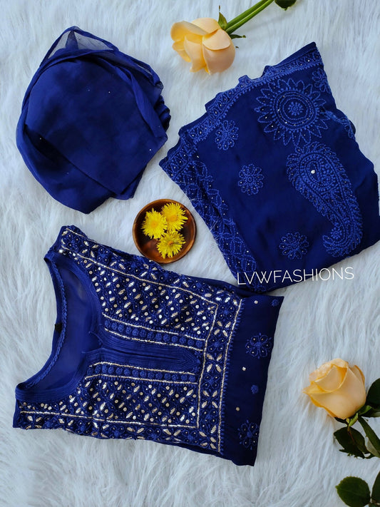 Neela Suit Premium Georgette Chikankari And Kamdani Embroidery