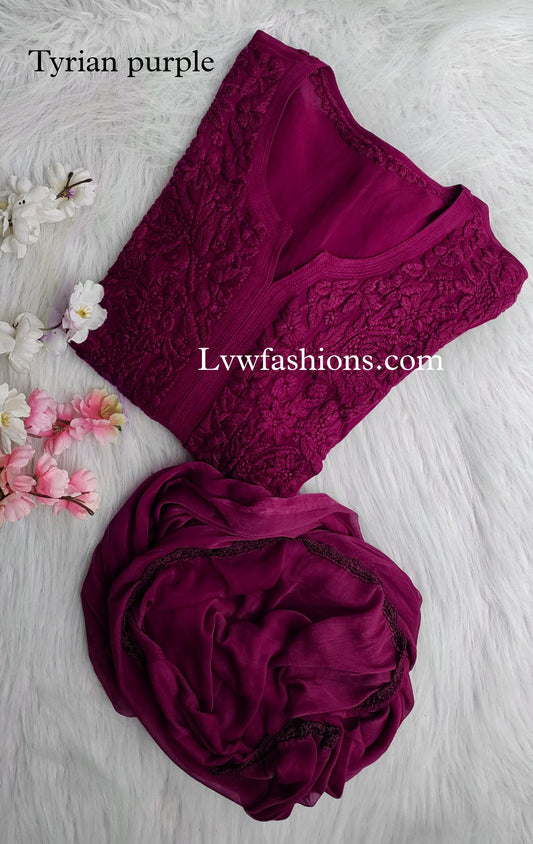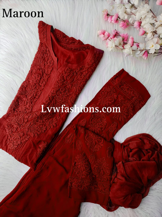Noor Kurta Sets Premium Georgette 3 Piece Set of pure Chikankari