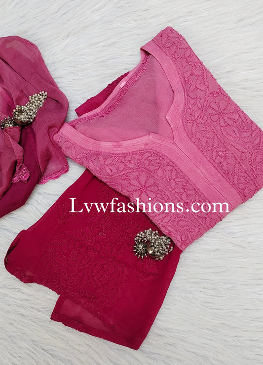 'Alfat' French Pink Ombre Premium Georgette Kurta Duptaa Set with Inner