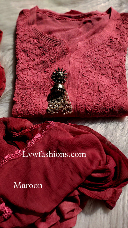 Pure Chikankari work What's in the Box: kurta Dupatta Silk Inner Premium Georgette Length: 46"...
