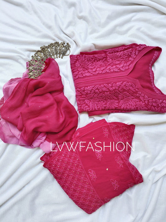 Ombre Love Beautiful Noori Premium Georgette Chikankari Kurta Cutdana Embroidery