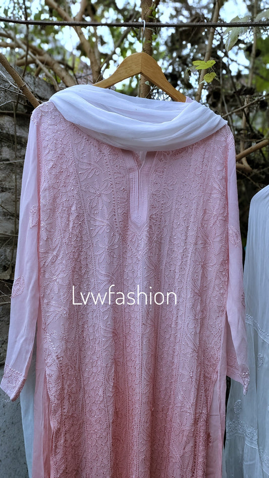 Peaches Pink Noori Premium Georgette Chikankari Kurta Cutdana Embroidery