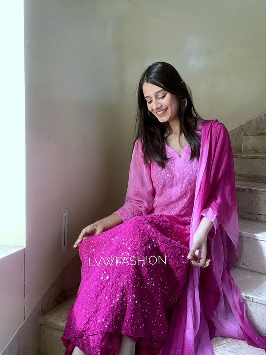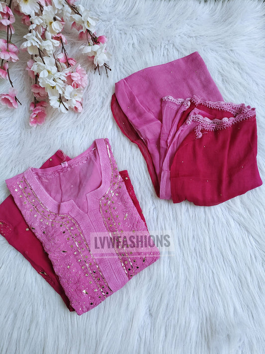 Pinkish Premium Soft Georgette Chikankari co-ord Set