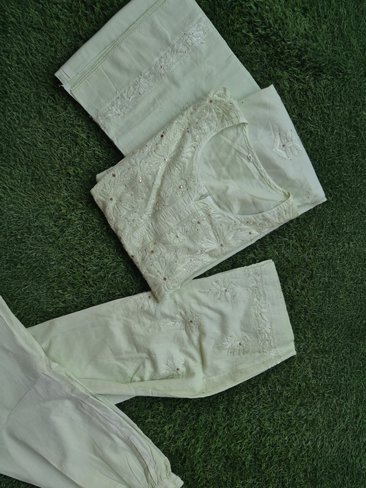 Pistachio Premium Soft Cotton Silk Chikankari co-ord Set