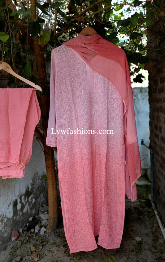 Pure Chikankari work What's in the Box: kurta Bottom Inner Dupatta Premium Georgette Length: 46"...
