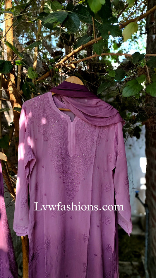 'Lilac' Premium Georgette Chikankari & Kamdani Embroidery 3 Piece Set