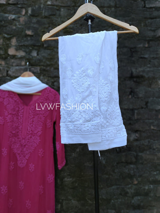 Premium Georgette Gharara Duptaa Set Chikankari & Kamdani
