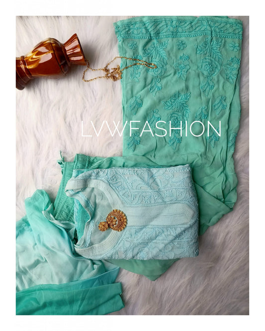 Premium Georgette 3 piece set With Chikankari & Kamdani