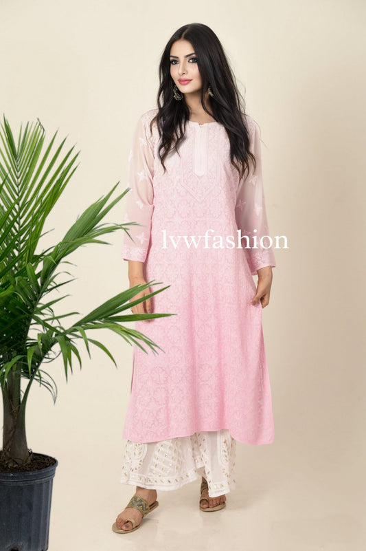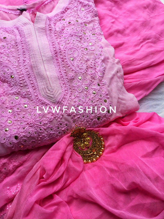 Pink & White premium Georgette Kurta Sharara Set