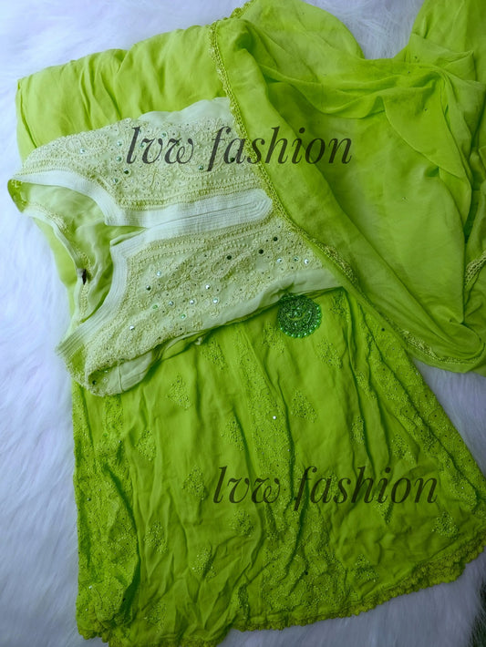 Pure Chikankari work What's in the Box: kurta Dupatta Bottom Silk inner Premium Georgette Length:...