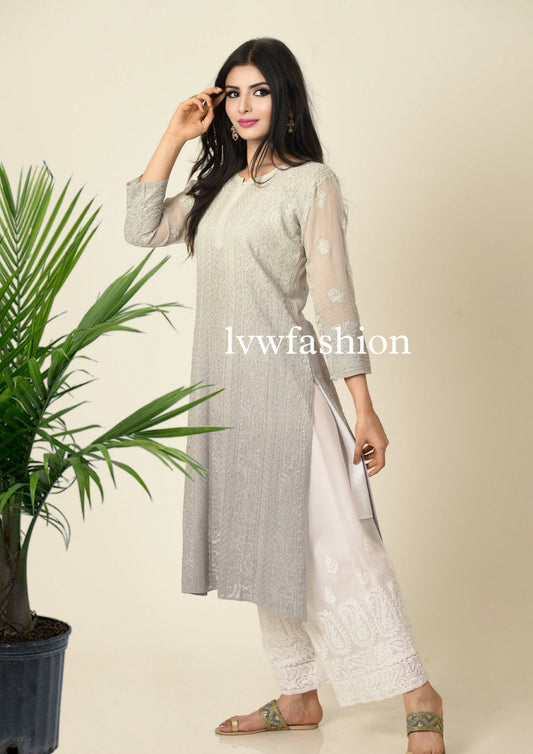 Gray & White premium Georgette Kurta And Plazzos