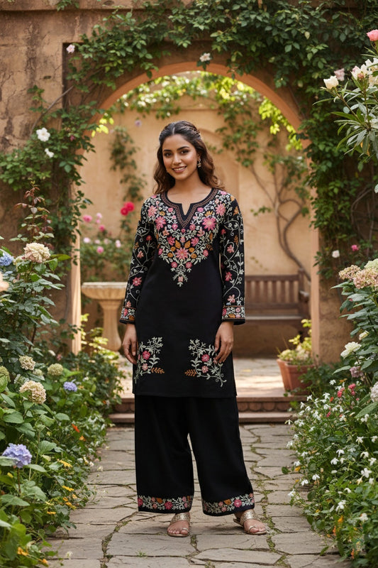 Black makhmal Chikankari Co-ord Set Luxurious Embroidery