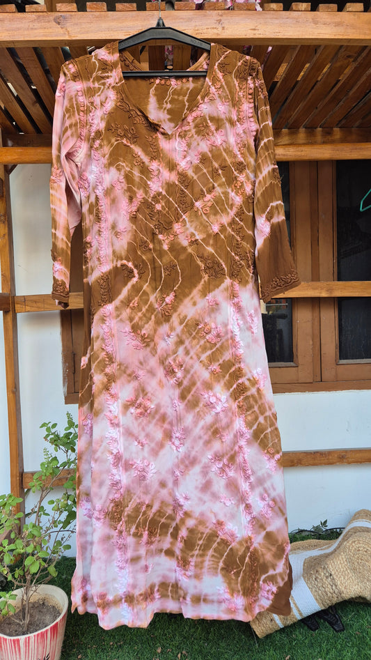 Beautiful tye dye Do Taar Chikankari on Premium Georgette Aline Straight Long Kurta