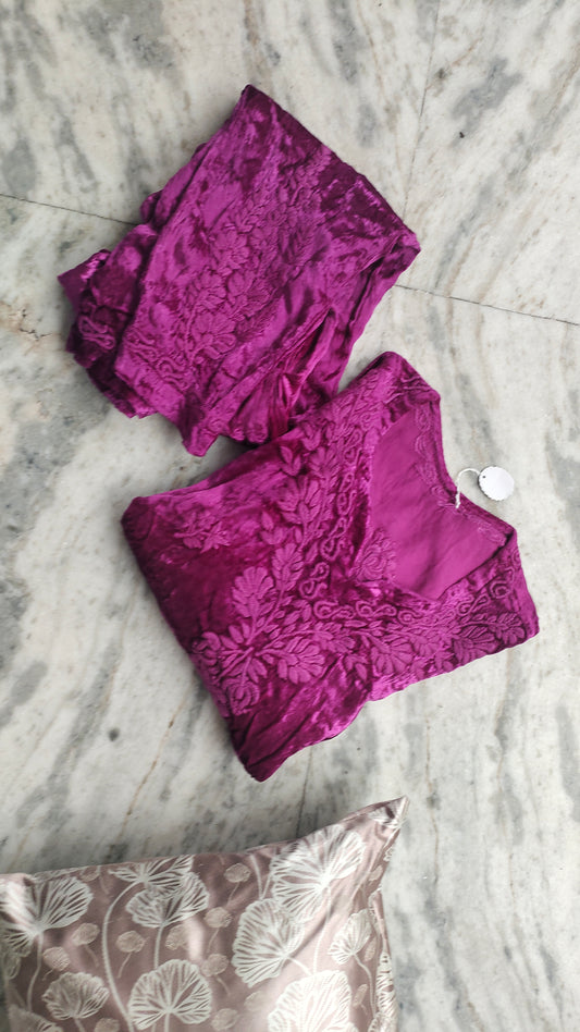 Super Maroon makhmal Chikankari Co-ord Set Luxurious Embroidery Pure Handcrafted