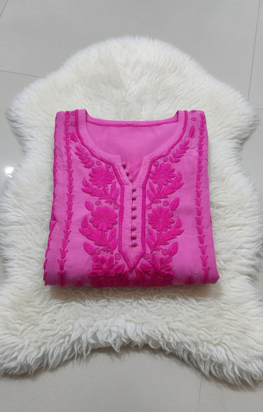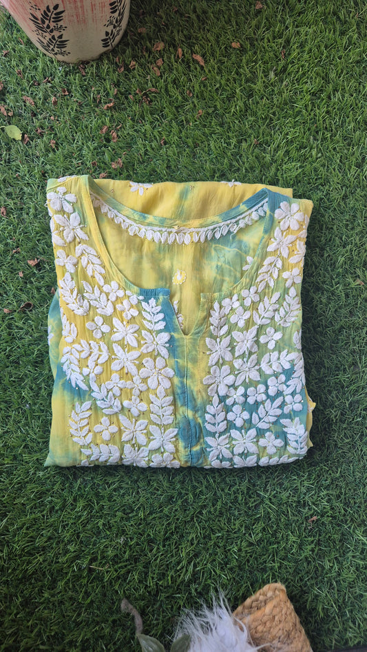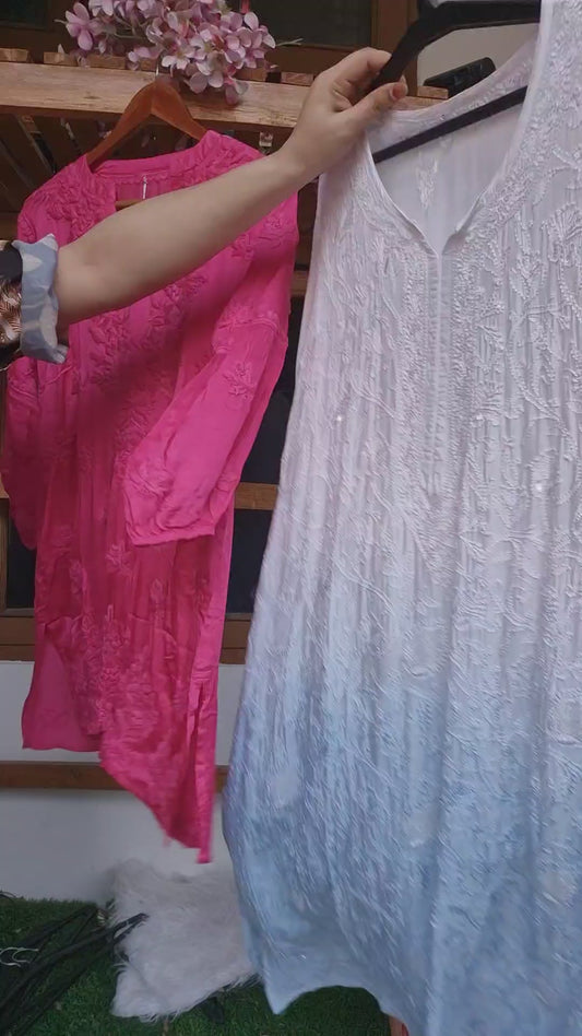 Chand Premium Silk Luxurious Chikankari Handcrafted kurti (5 times Dyeable)