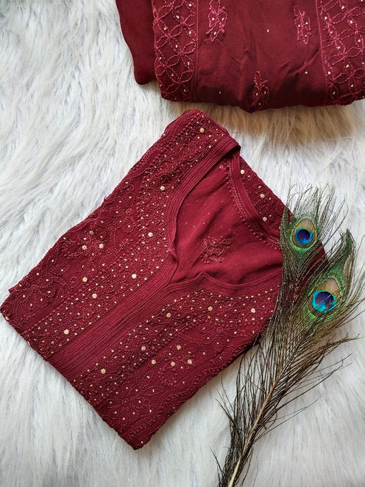 Firozi Premium Georgette Light Weight kurta With both Side Chikankari Embroidery With Silk Slip