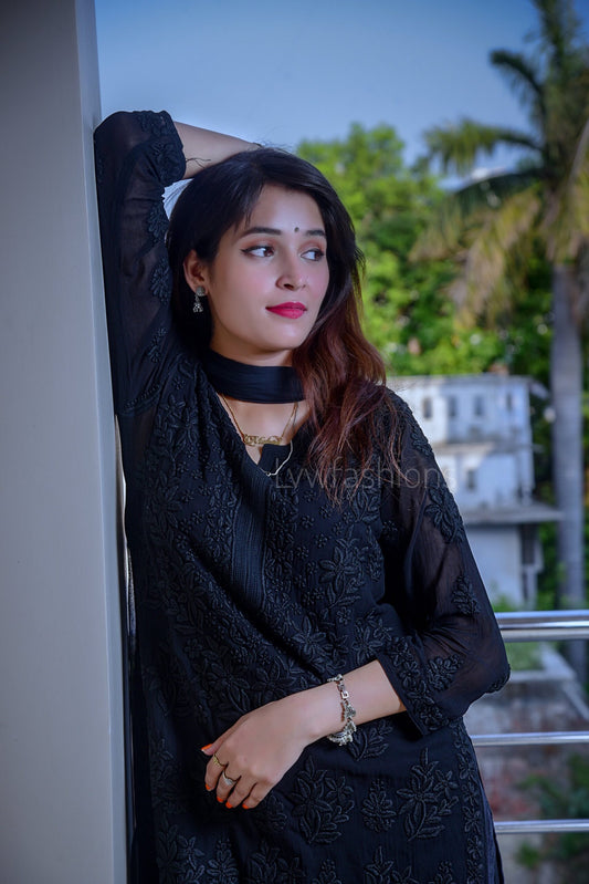 Kajal Premium Georgette Black Chikankari Kurta Set