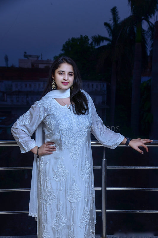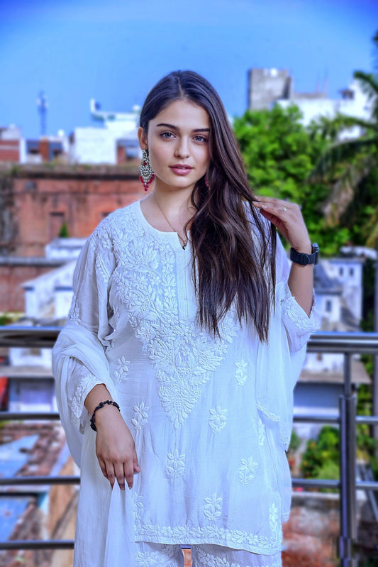 'UJALA' Pure Soft Muslin White Chikankari Kurti Set
