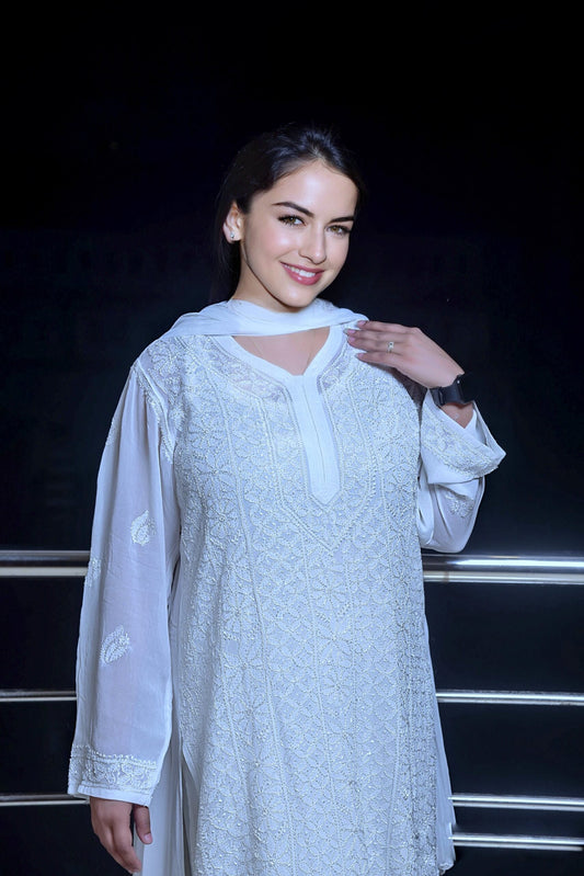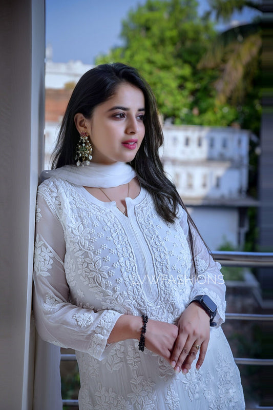 Ujala White Premium Georgette Chikankari Luxurious Look Kurta