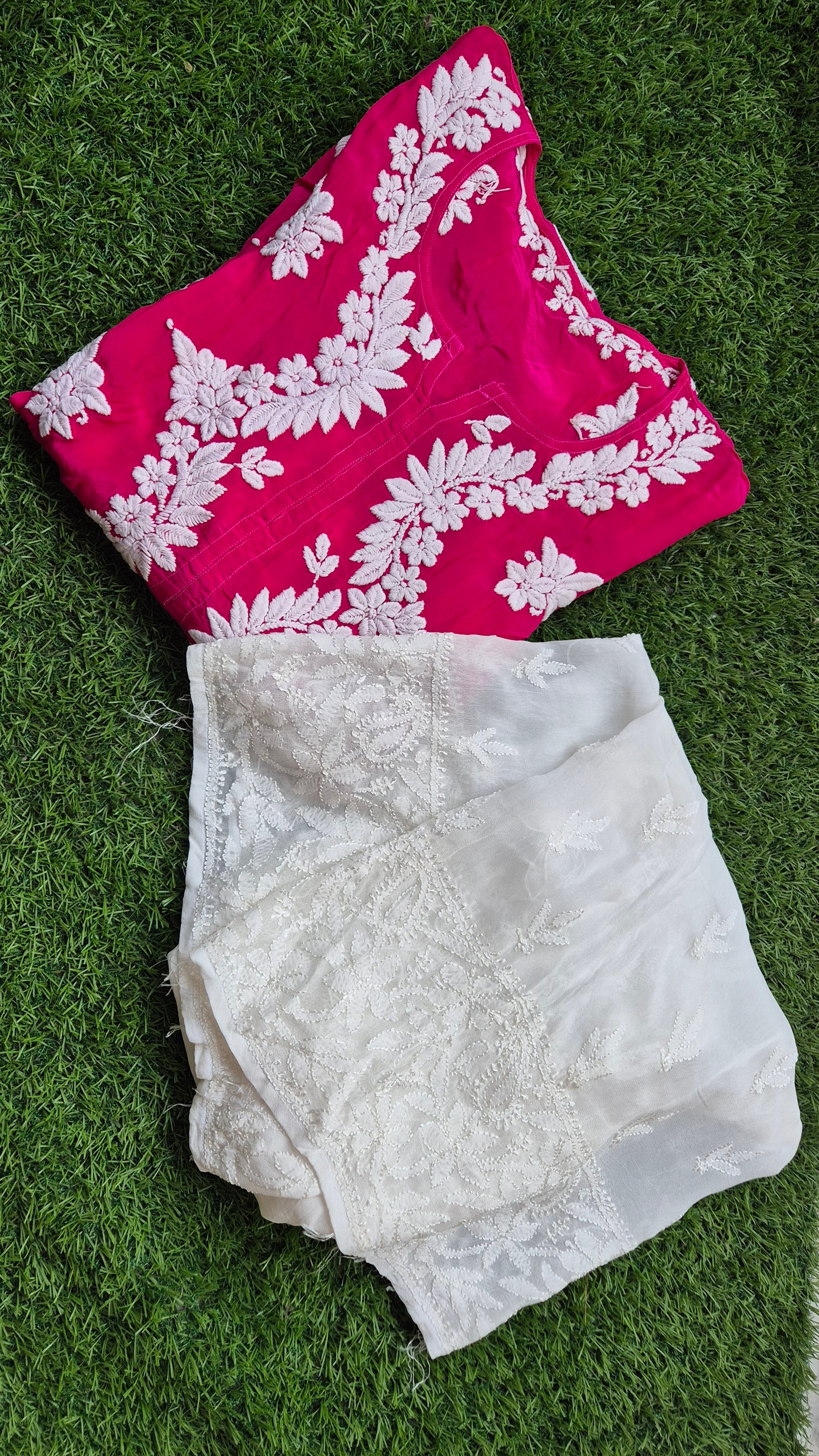 Adaya Premium Silk Chikankari Kurta with Resham Embroidery Plazzos (co-ord Set)