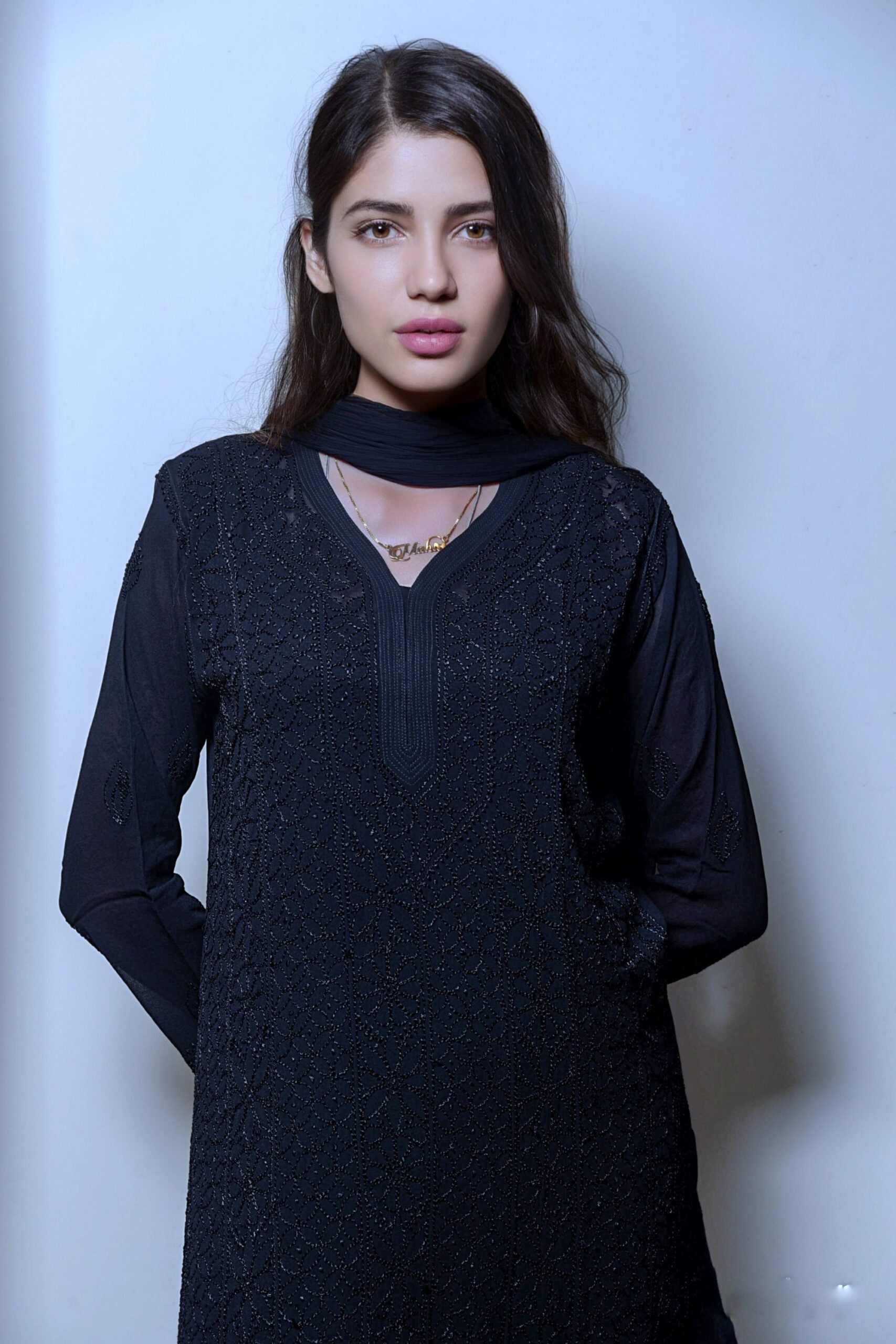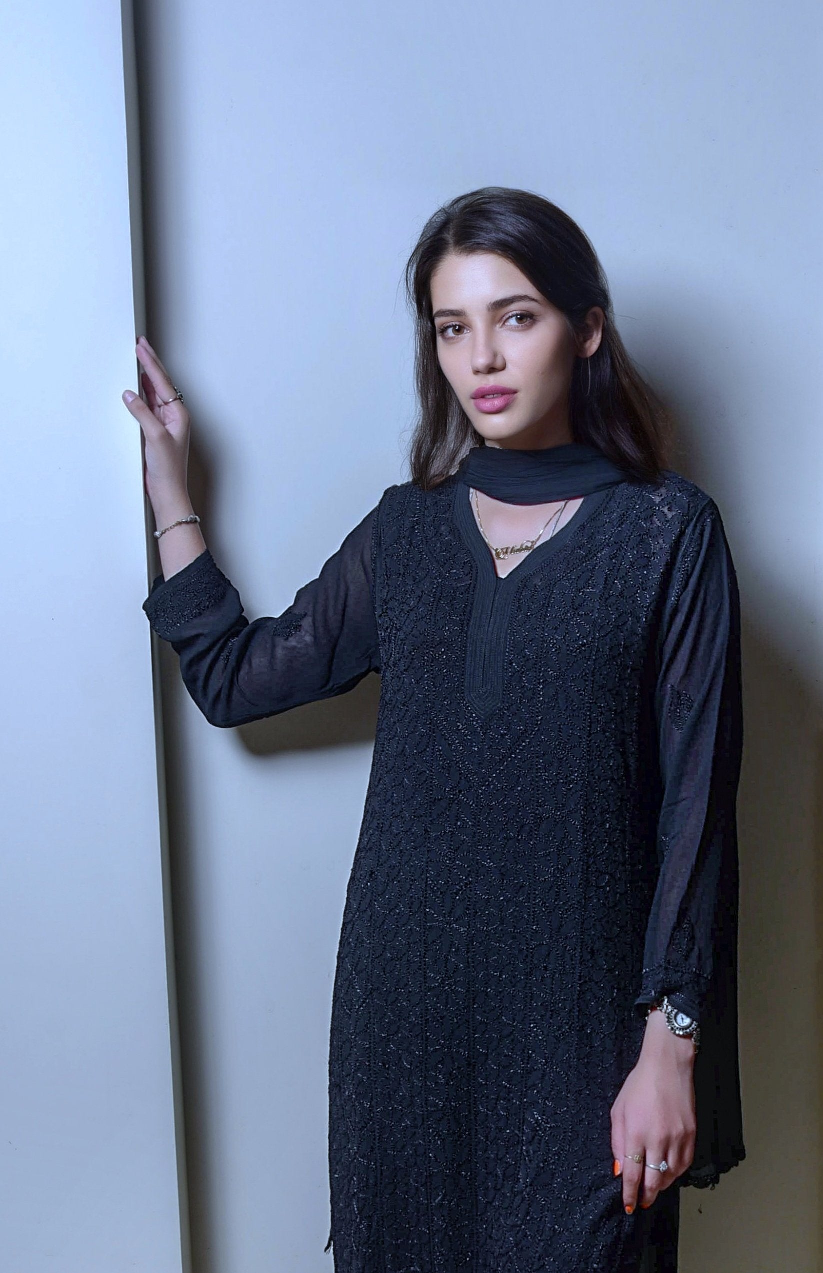 Beautiful Black Resham Embroidery Chikankari Kurta Set
