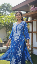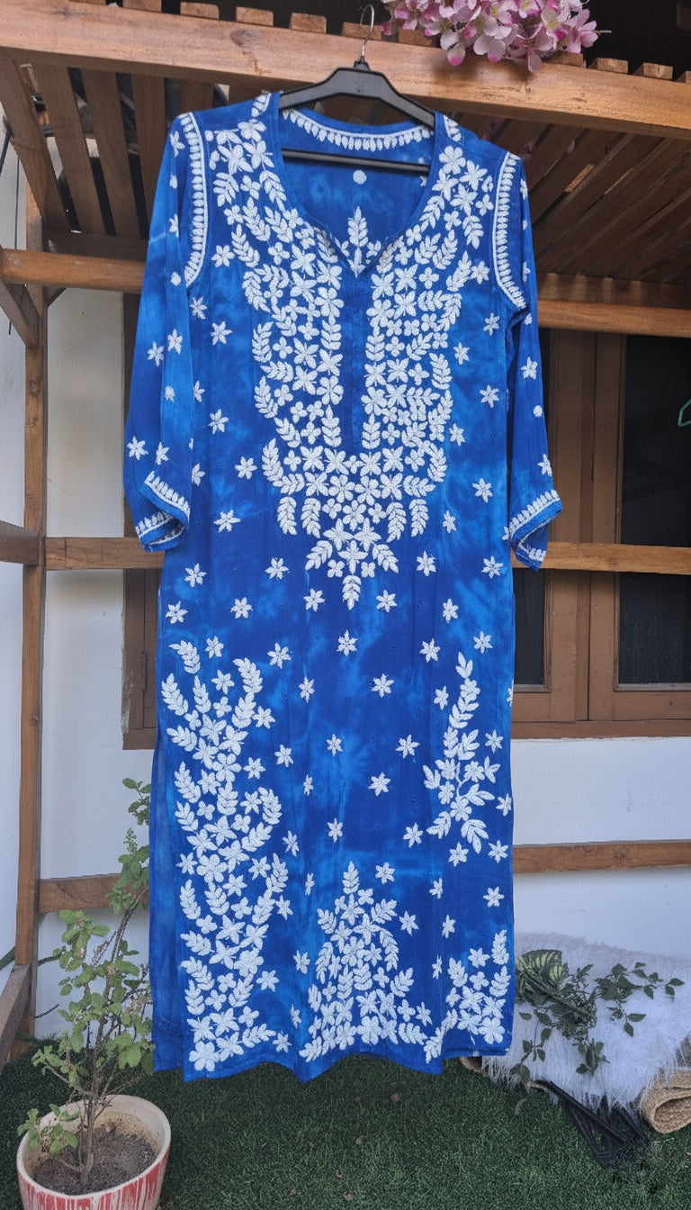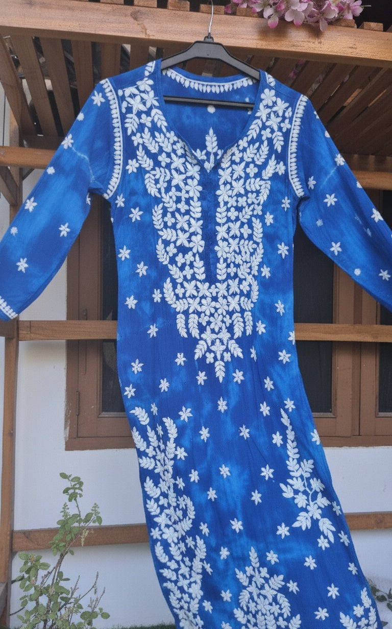 Beautiful Blue Shade Pure Mul Cotton Chikankari Kurti for Women with kamdani