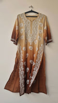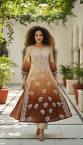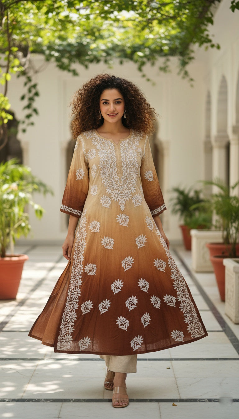 Beautiful Brown Shade Pure Mul Cotton DO TAAR Chikankari Kurti for Women