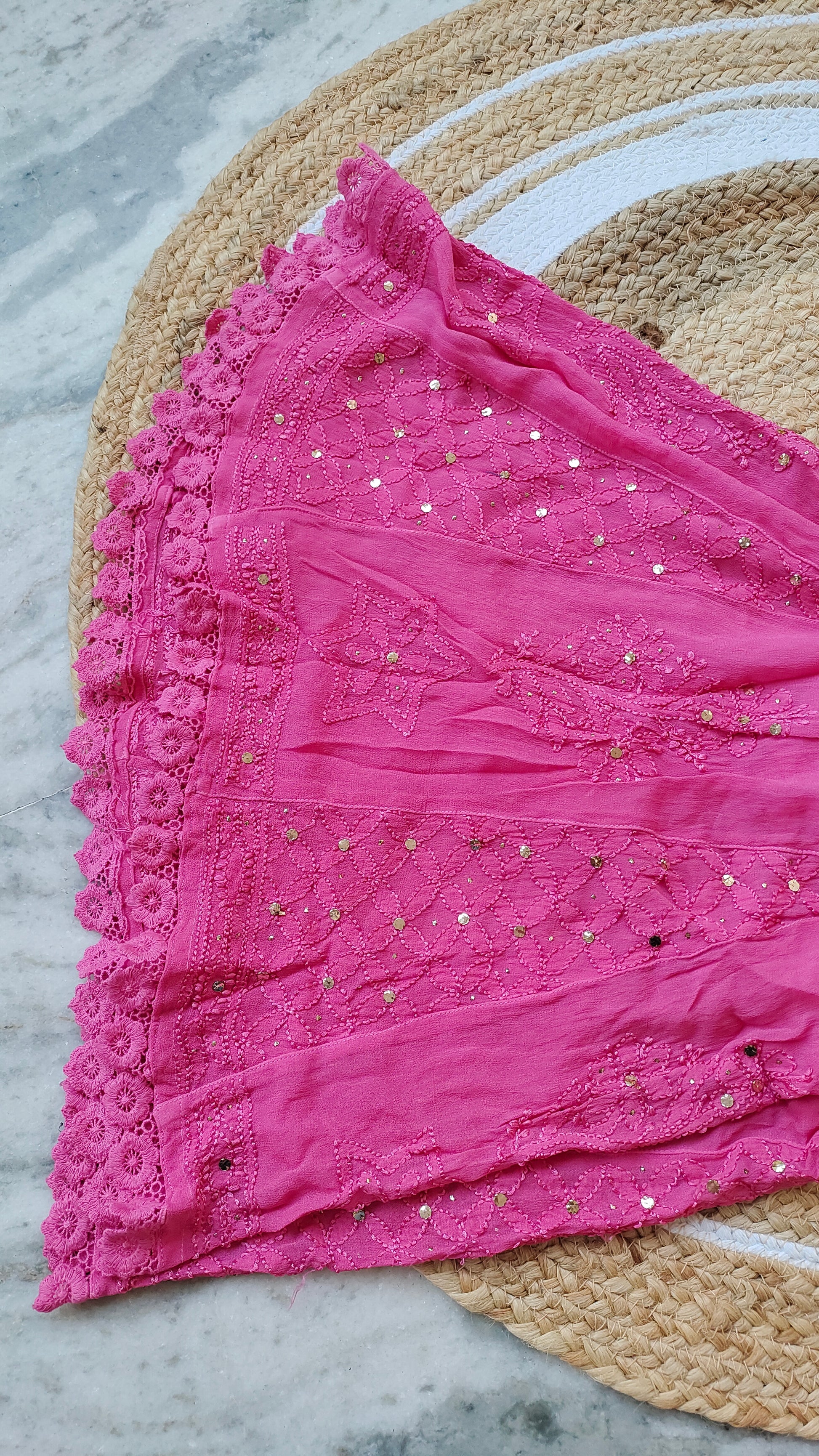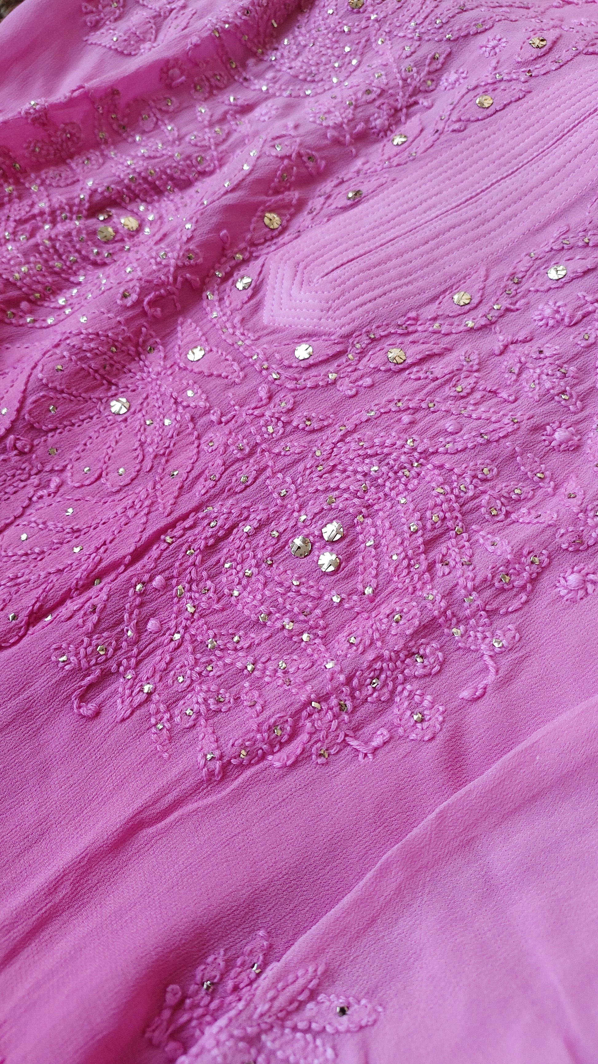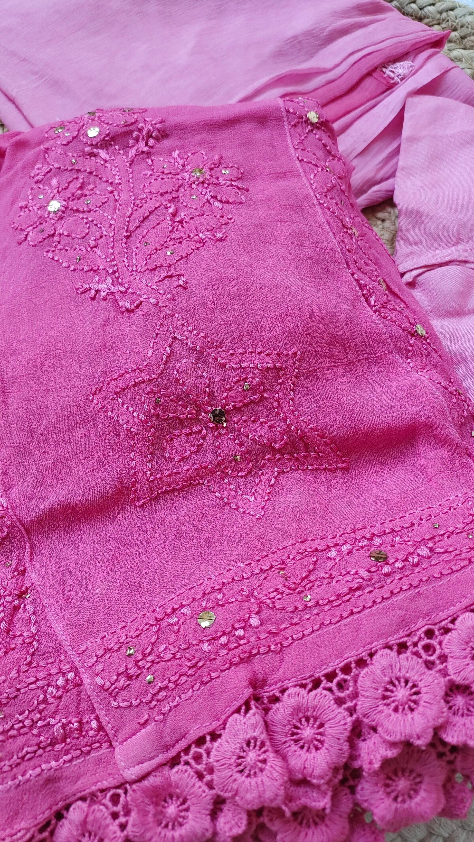 Beautiful Pinkish Premium Georgette Chikankari Mukaish Sharara Set