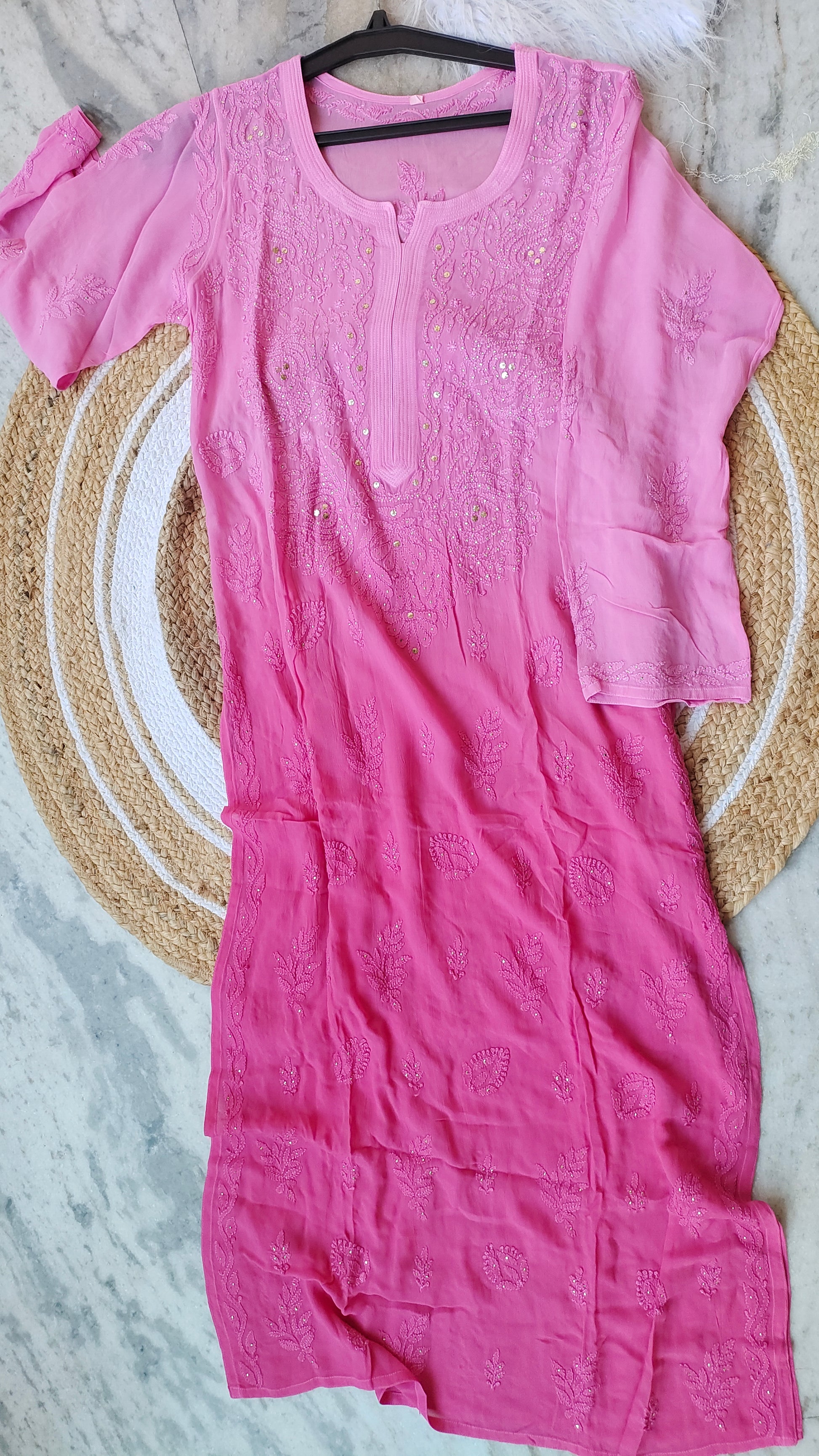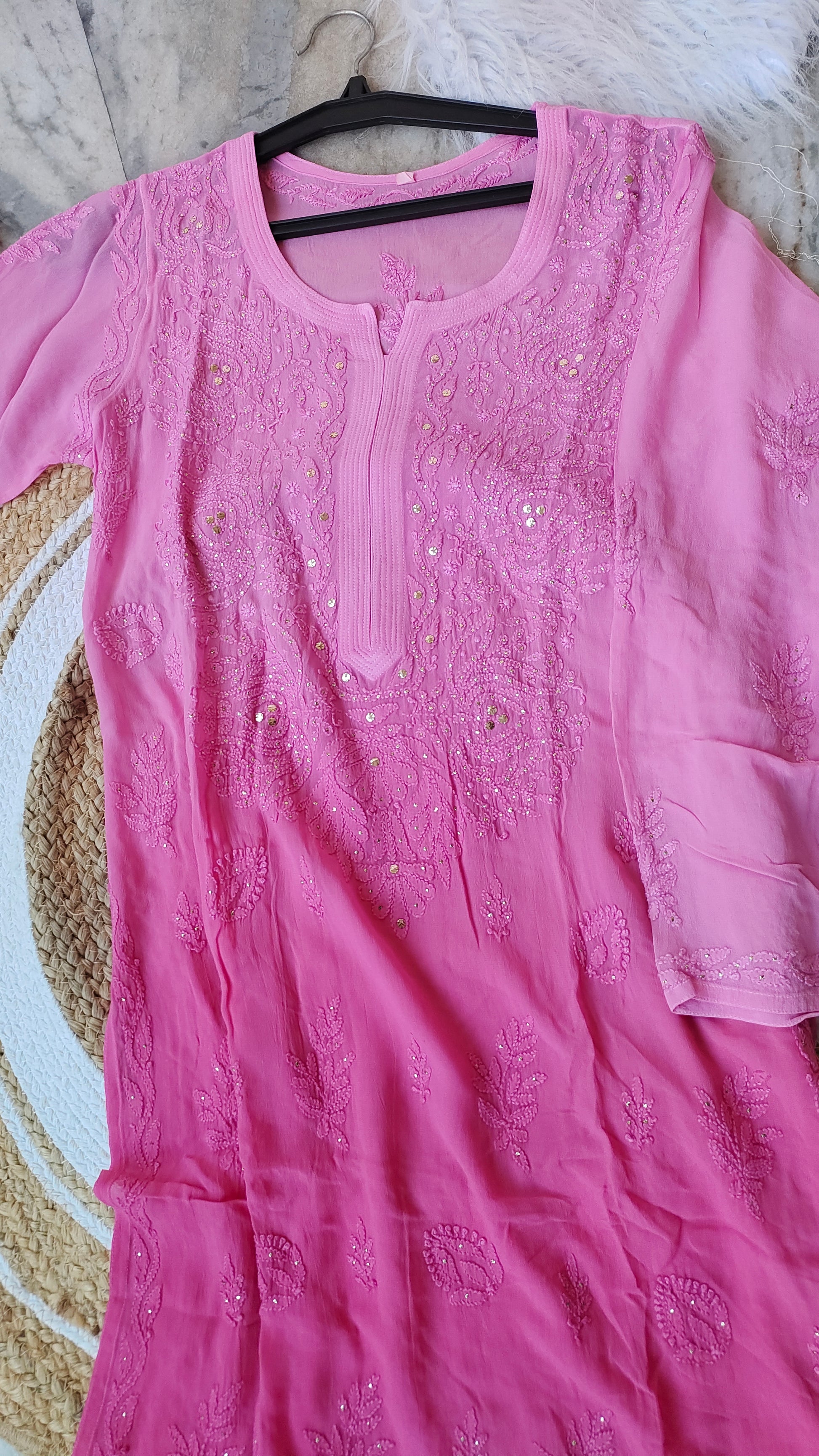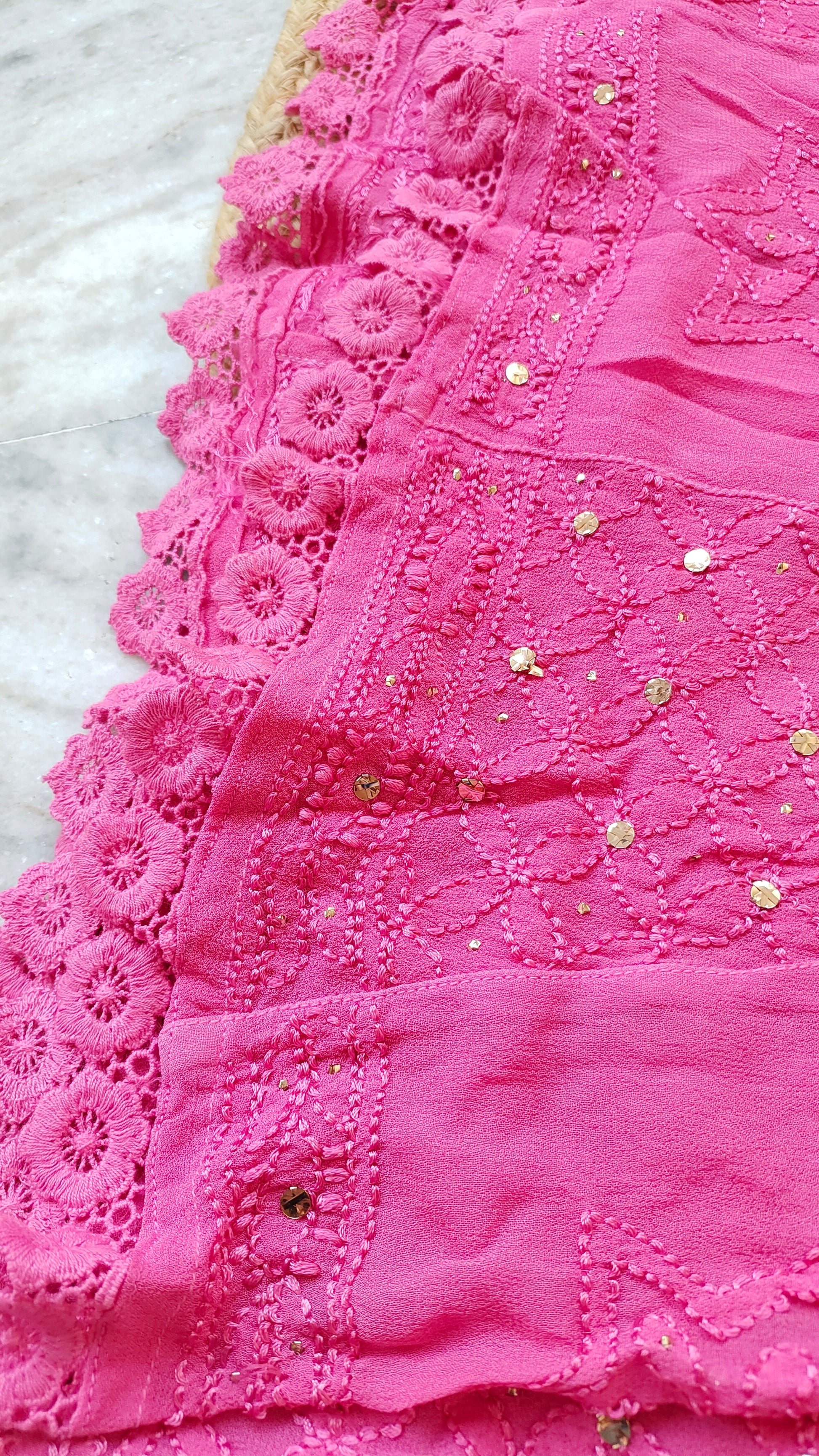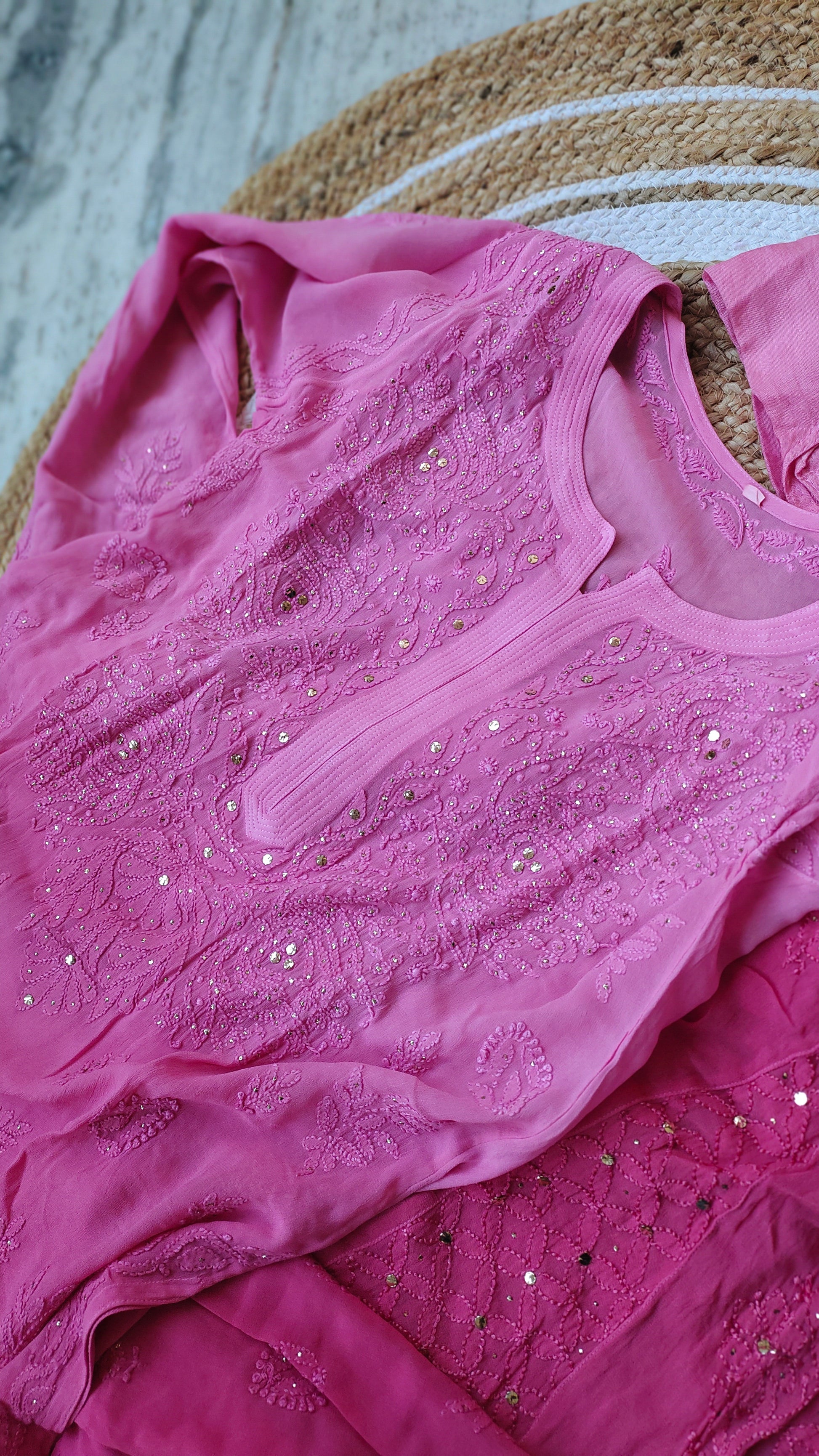 Beautiful Pinkish Premium Georgette Chikankari Mukaish Sharara Set