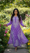 Beautiful Premium Georgette Chikankari Luxurious Long Kurta with kamdani add on