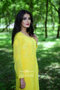 Beautiful Resham Embroidery Yellow Premium Georgette 3 Piece set slip Include
