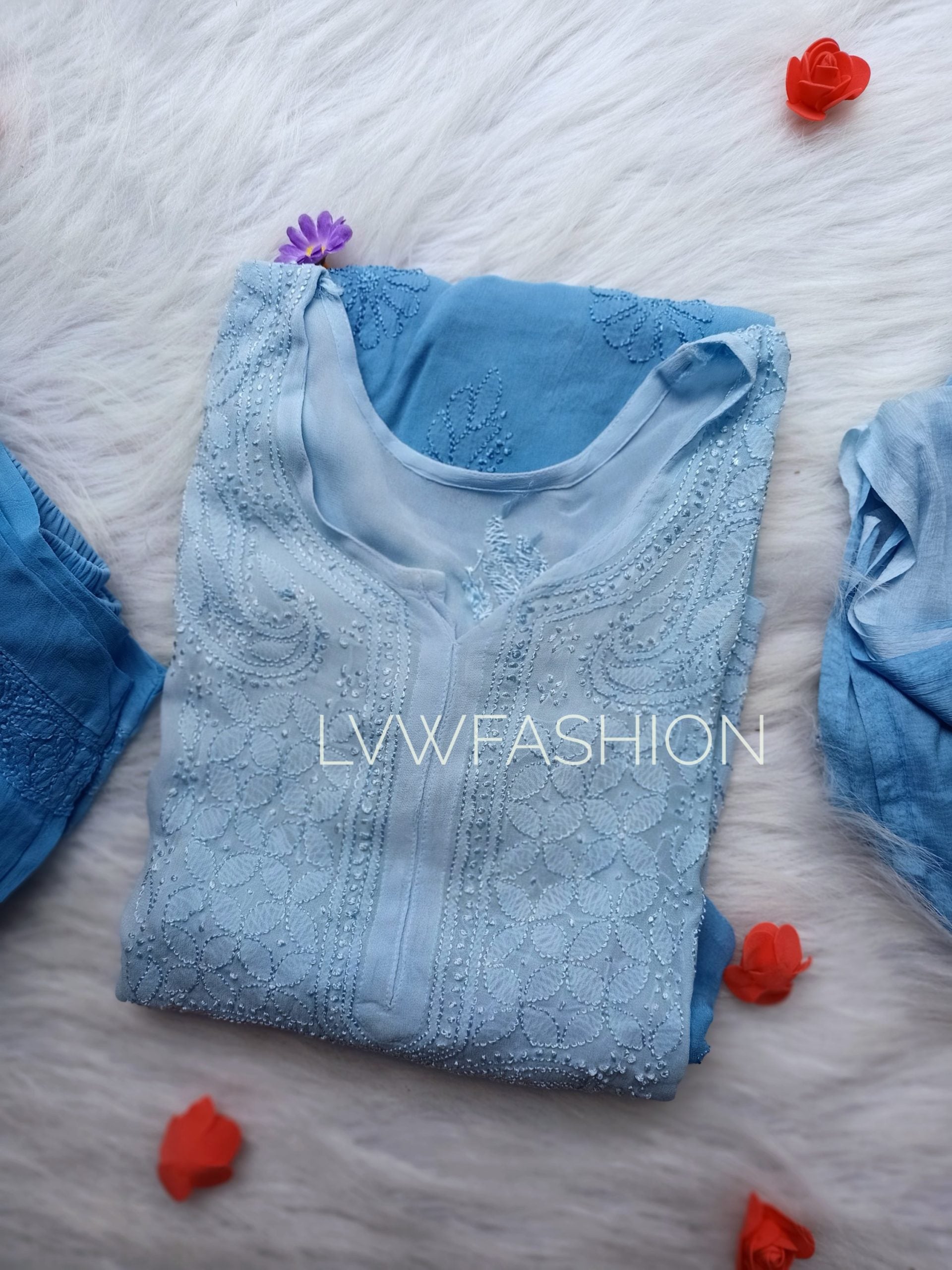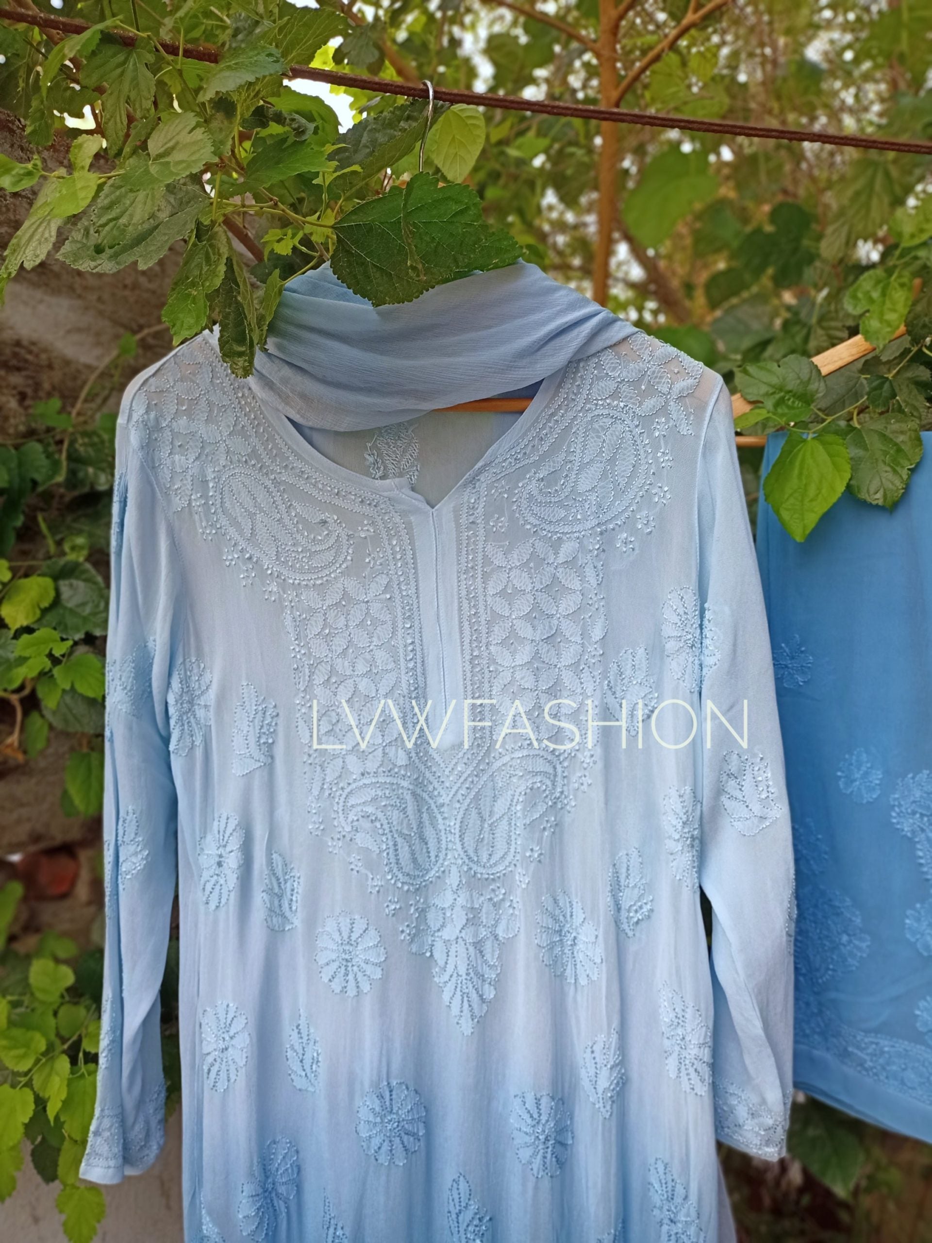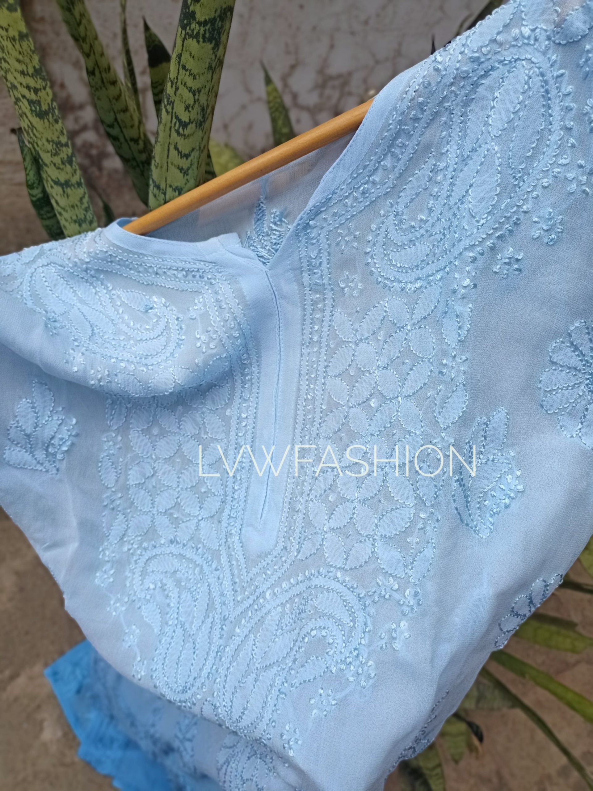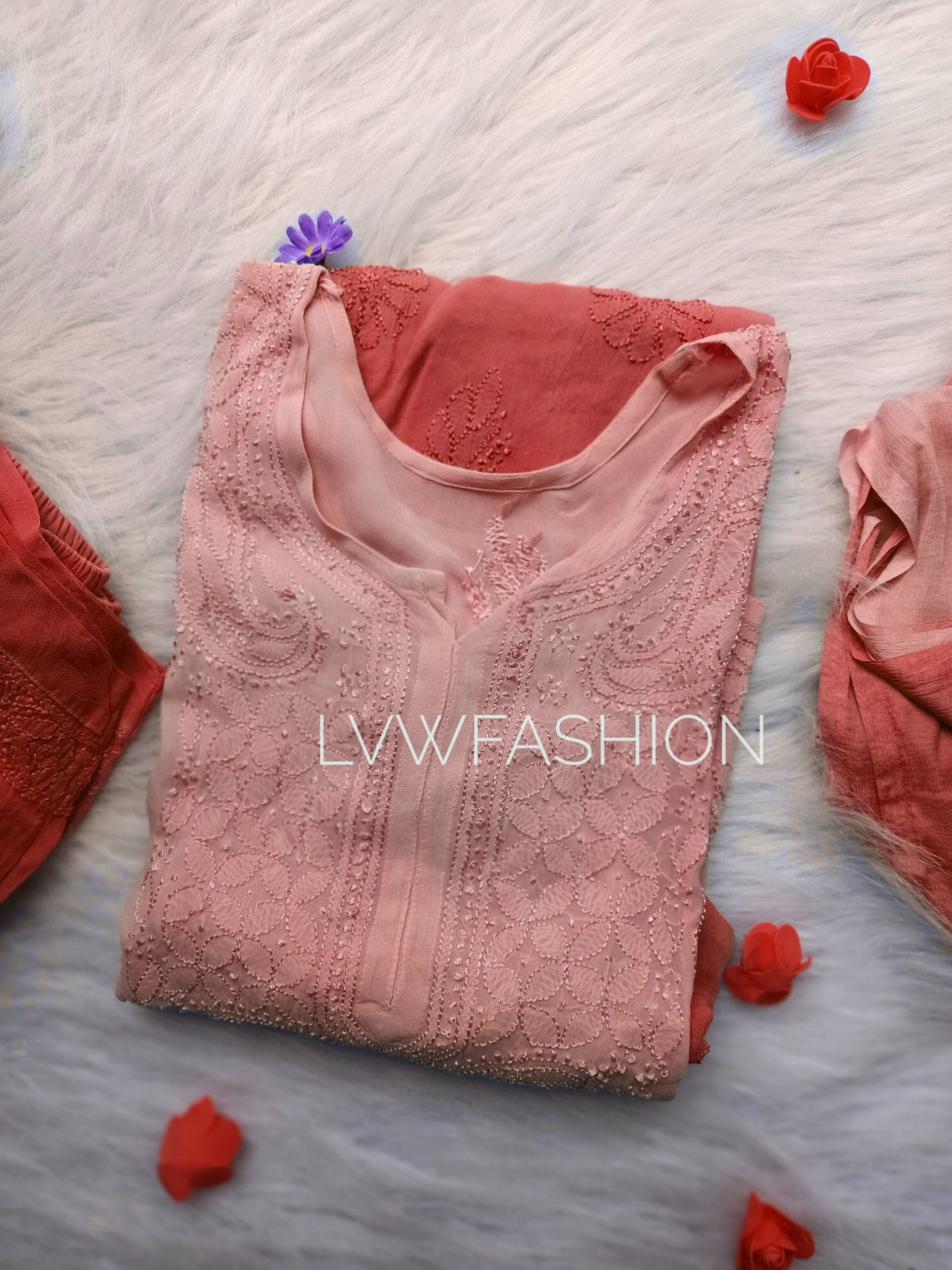 Beautiful Shades Premium Georgette Resham Thread Long Kurta With Slip