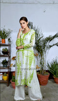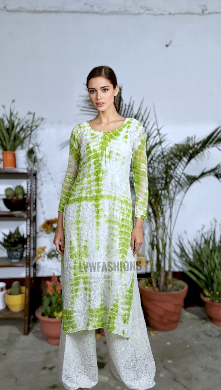 Beautiful Tie Dye White Base Resham Embroidery Chikankari Long Kurta With Silk Slip (Inner)