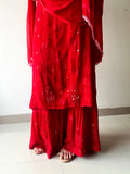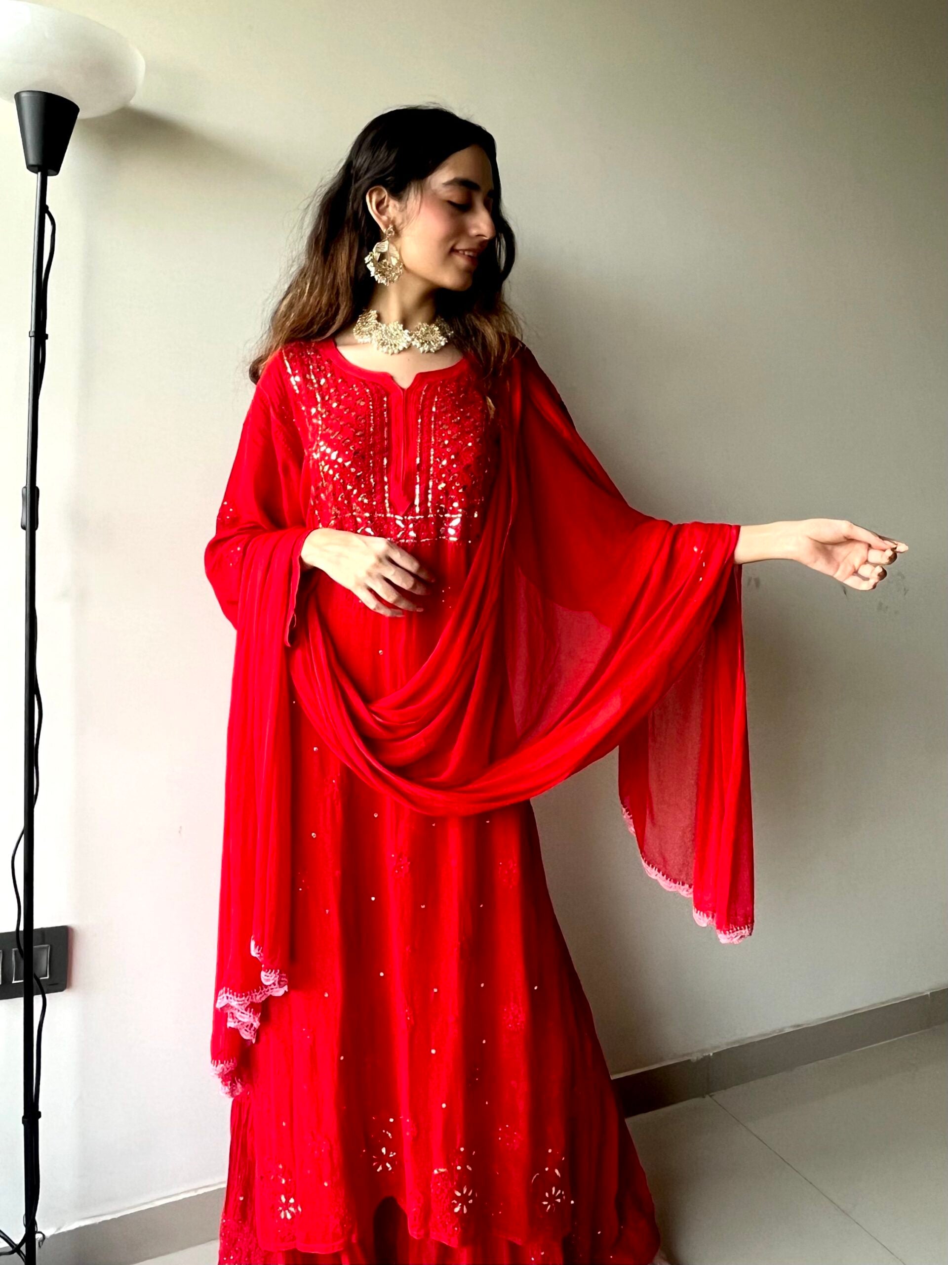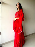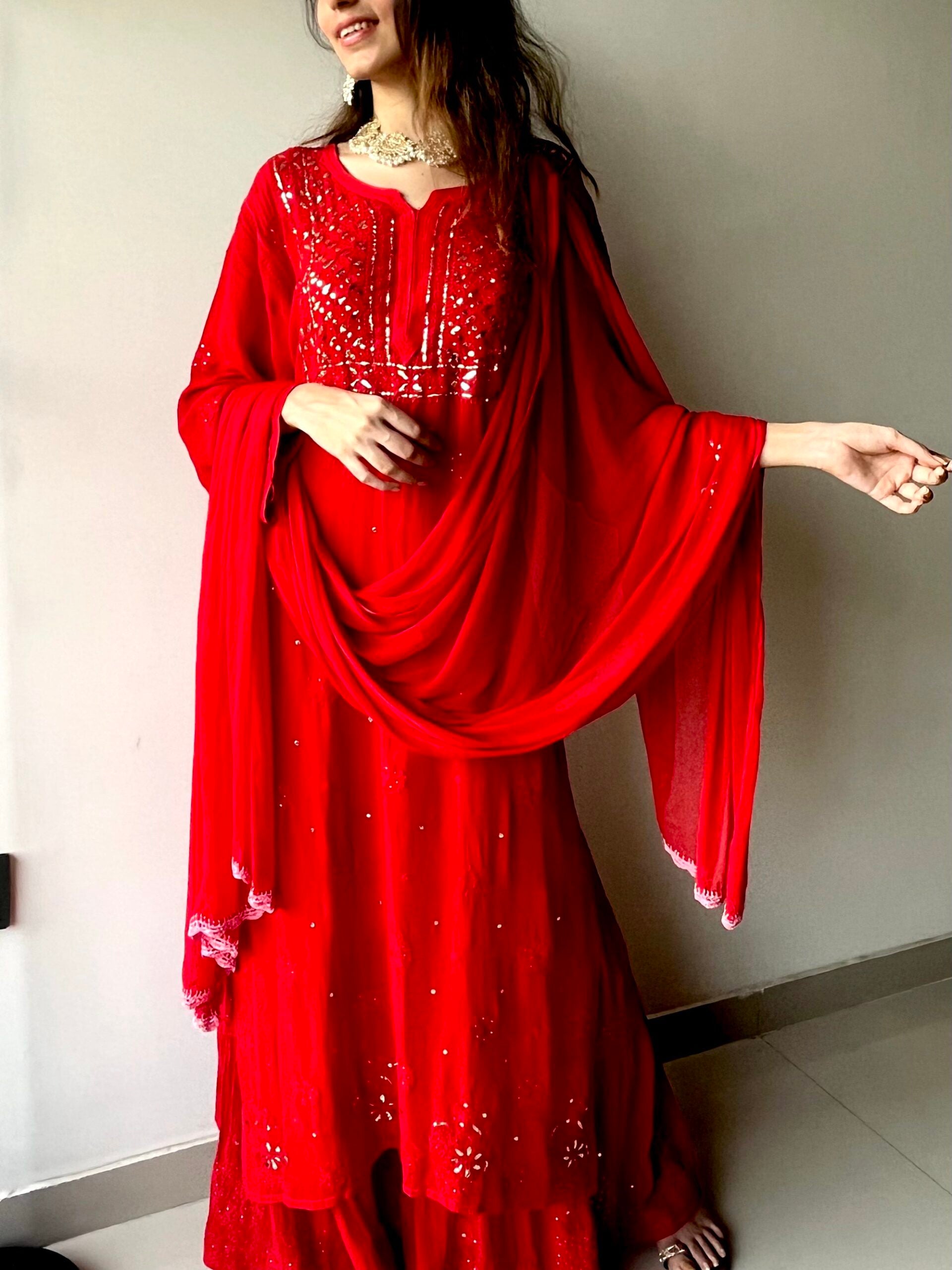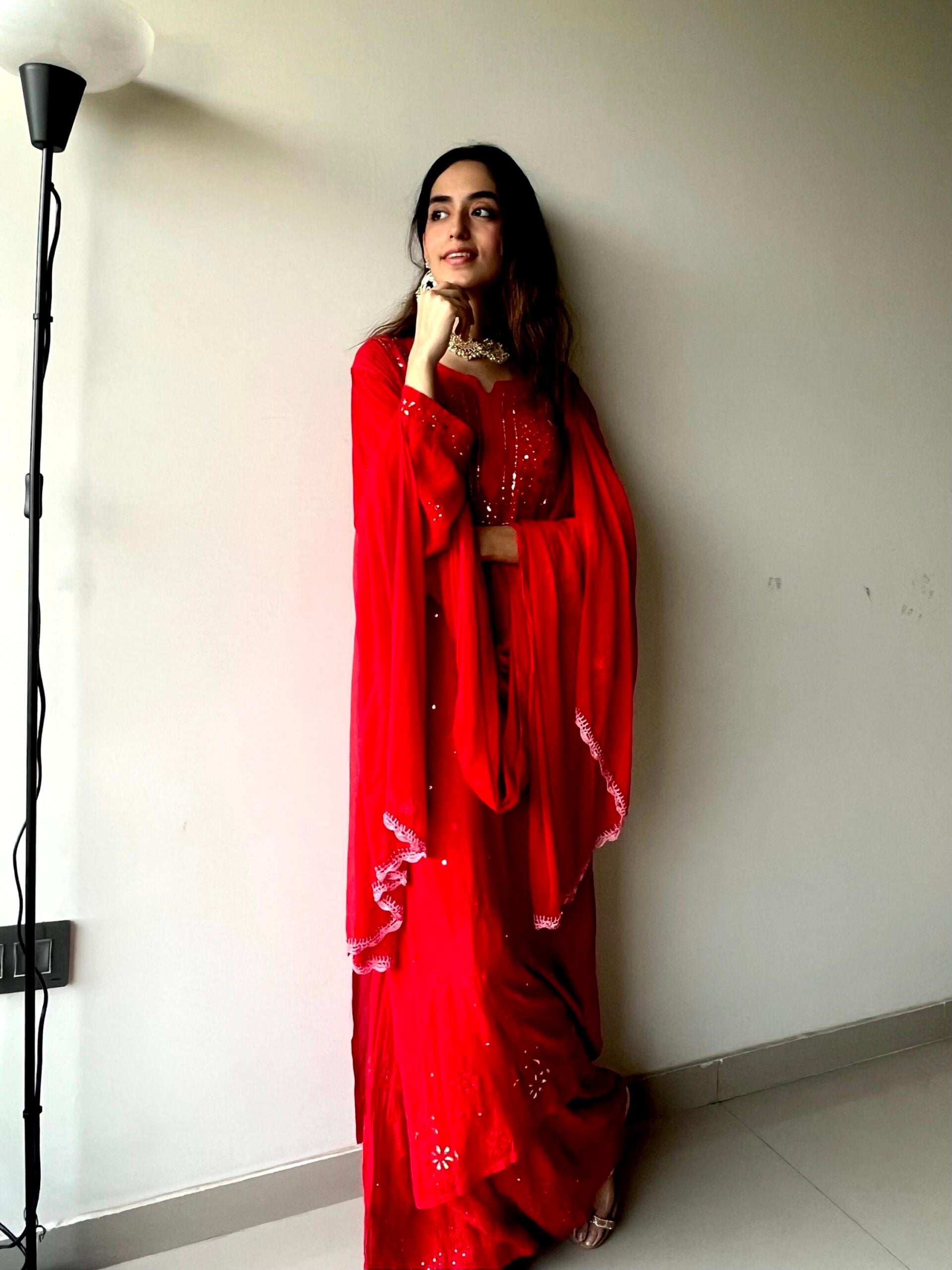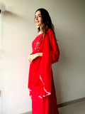 Blood Red Beautiful Premium Georgette 3 Piece Set