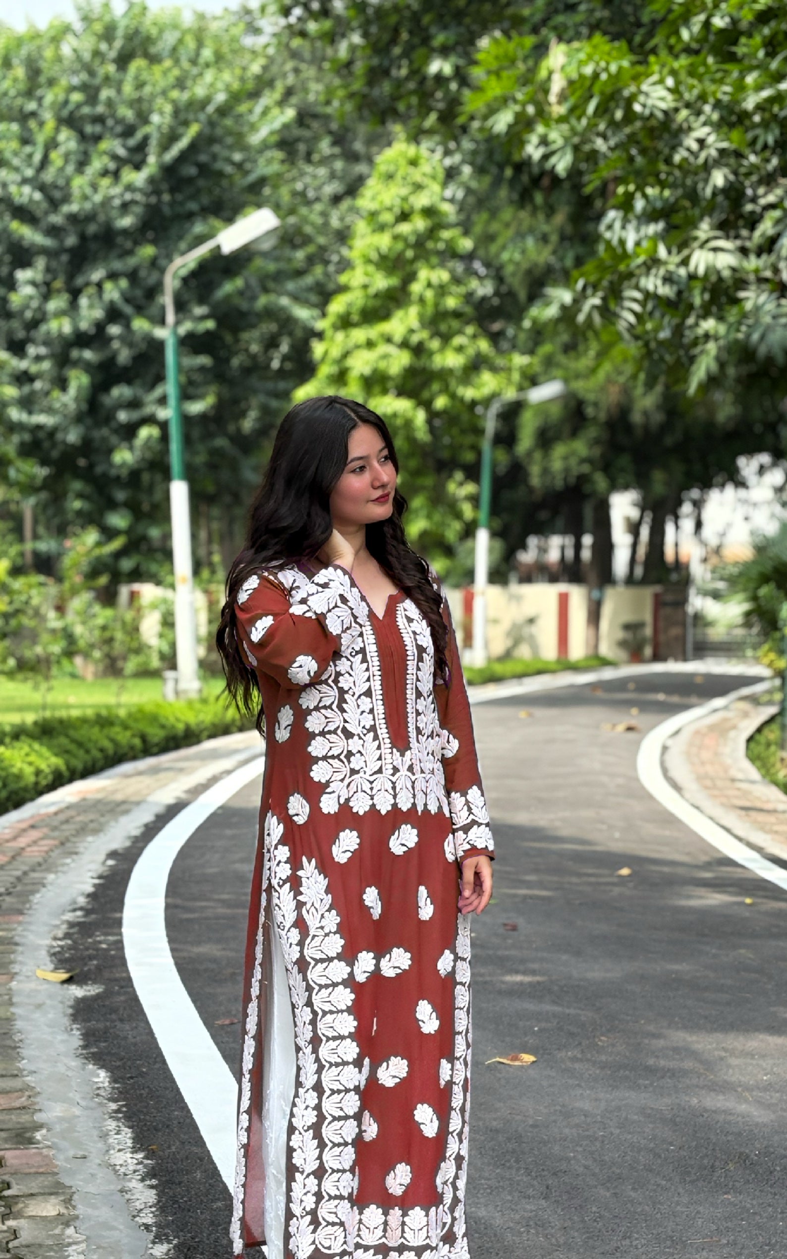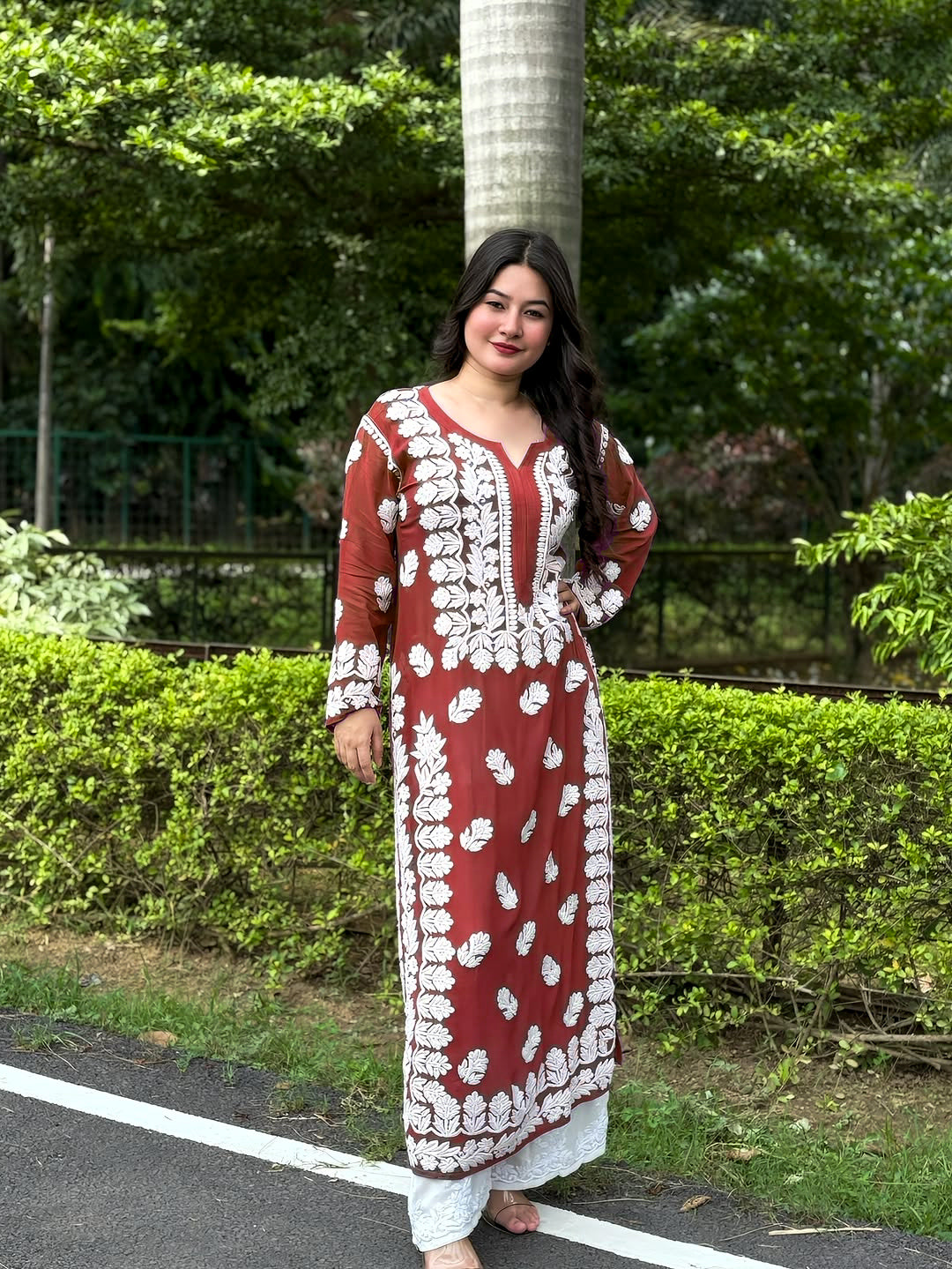Brownie Premium Georgette Chikankari Luxurious Long Kurti For women