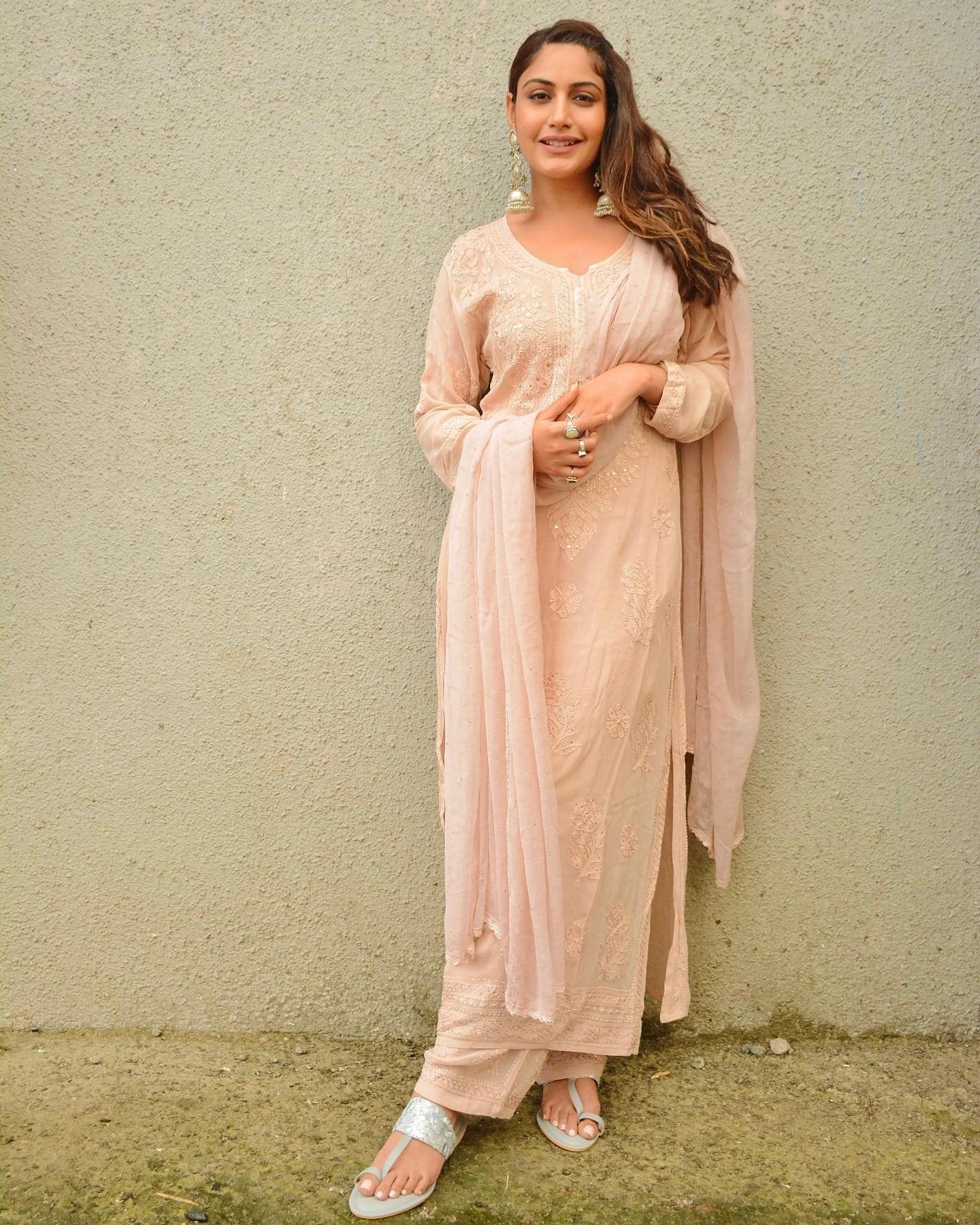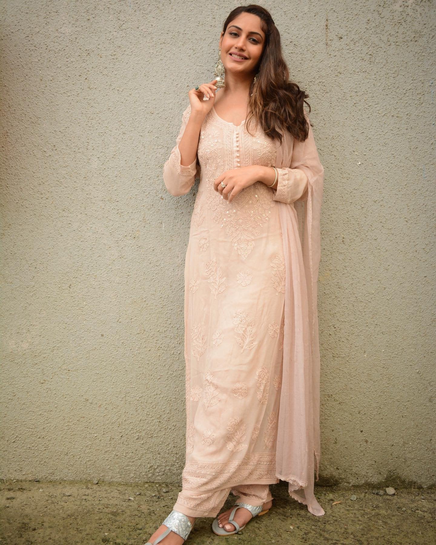 Celebrity Inspired Look Premium Georgette Resham Embroidery Chikankari Kurta set