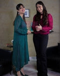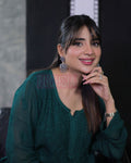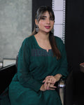 Celebrity Look Bottle Green premium Georgette Resham Long Kurta
