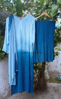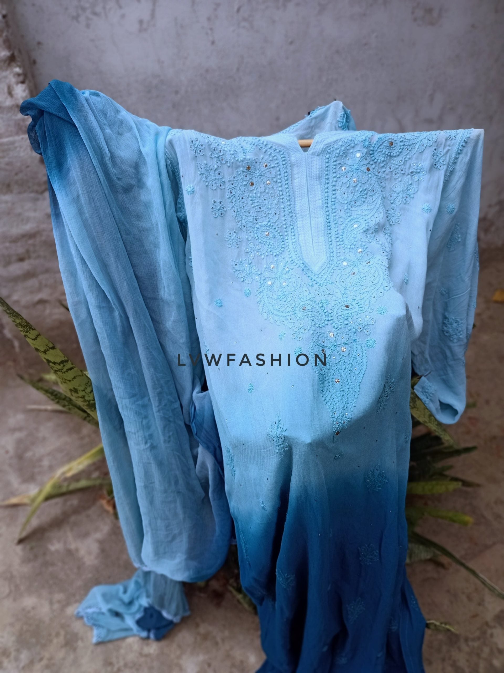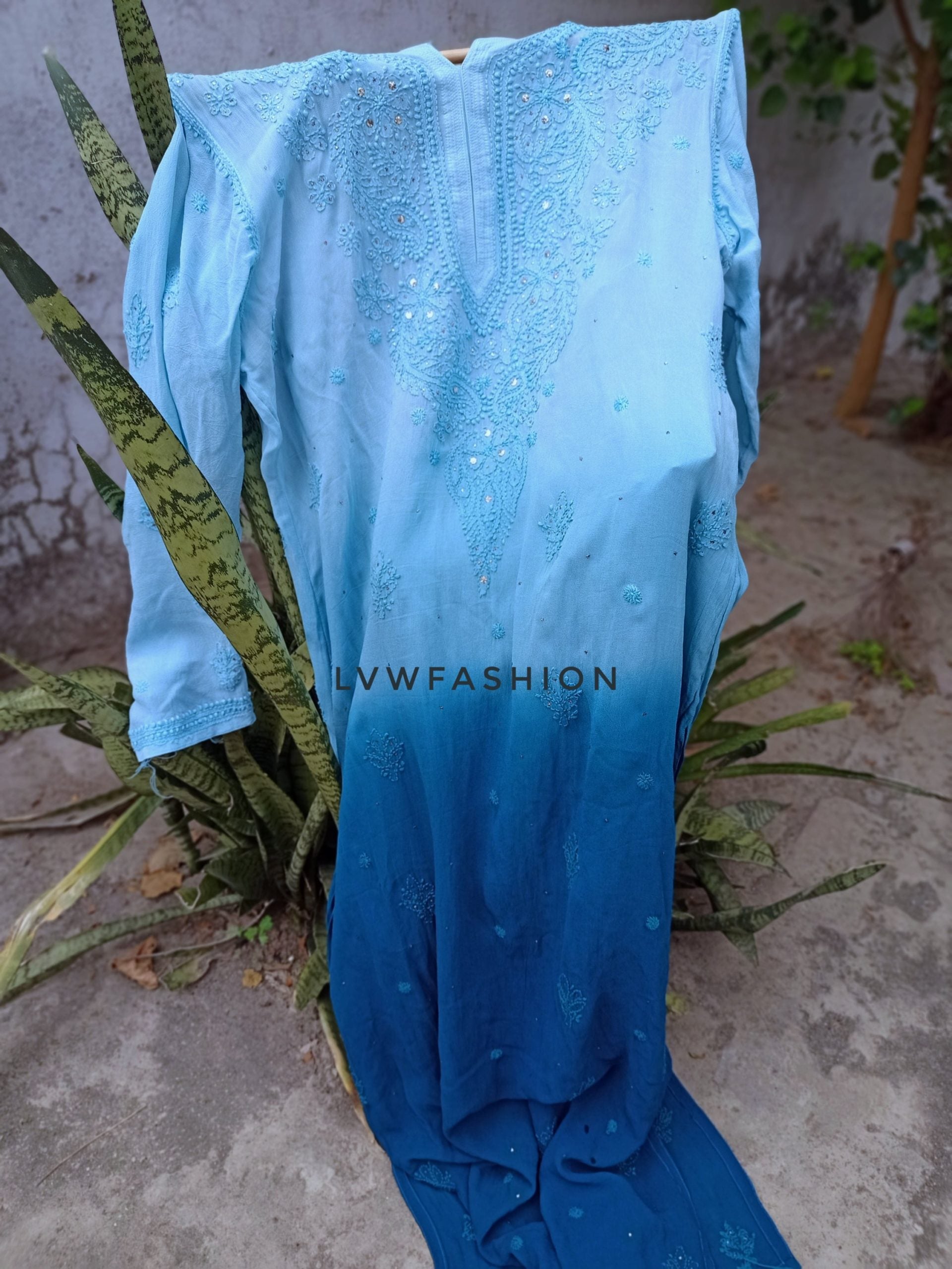 Christmas Blue Ombre Premium Georgette 3 Piece Set