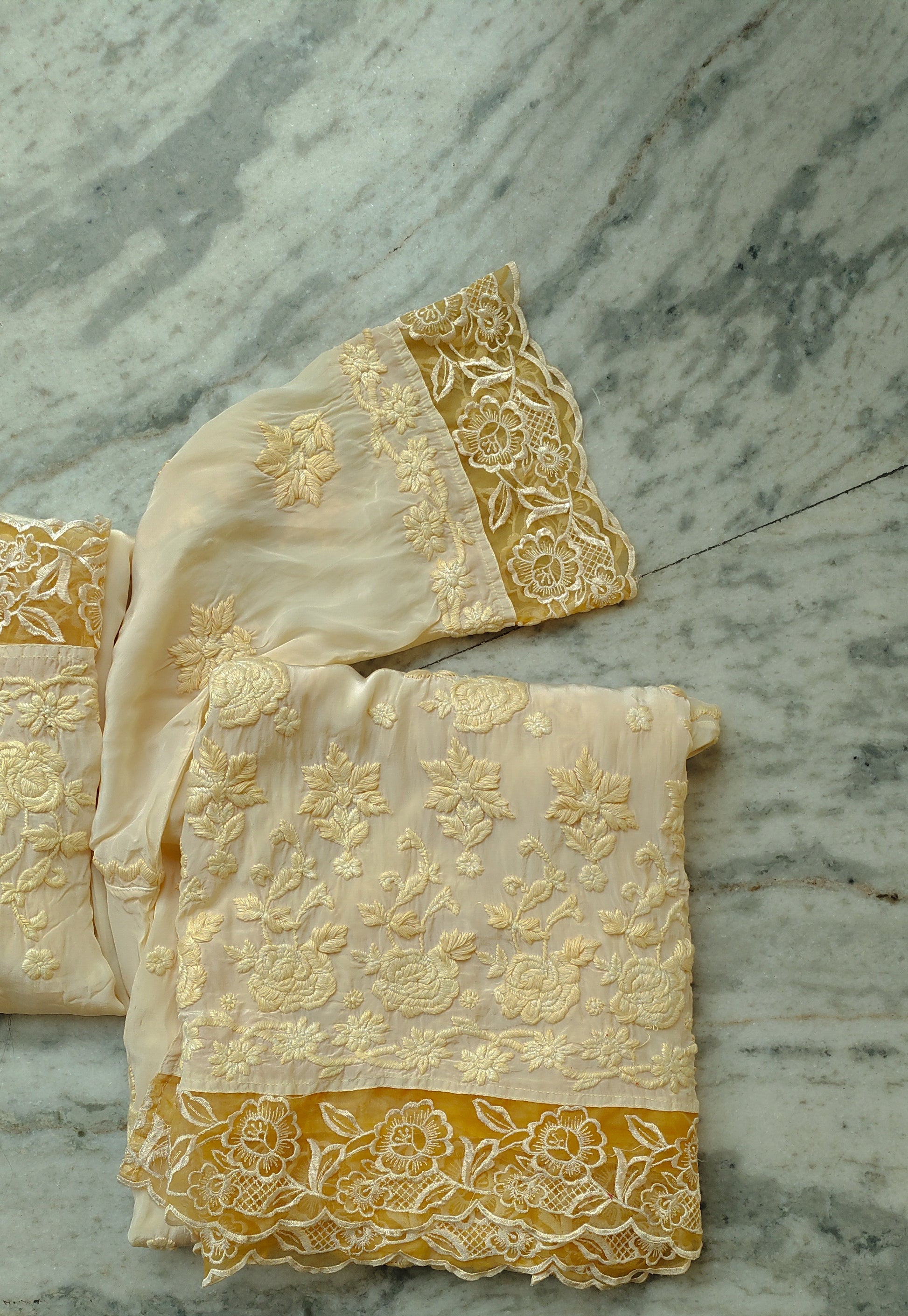Elevate your special day with our Limited Edition Vanilla Adaya Rose Wedding Luxurious Collection. Made from premium silk, this co-ord set is handcrafted with special rose embroidery and lace details for a truly luxurious and unique look. Own a piece of elegance with this must-have set.