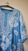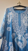 Beautiful Blue Shade Pure Mul Cotton DO TAAR Chikankari Kurti for Women