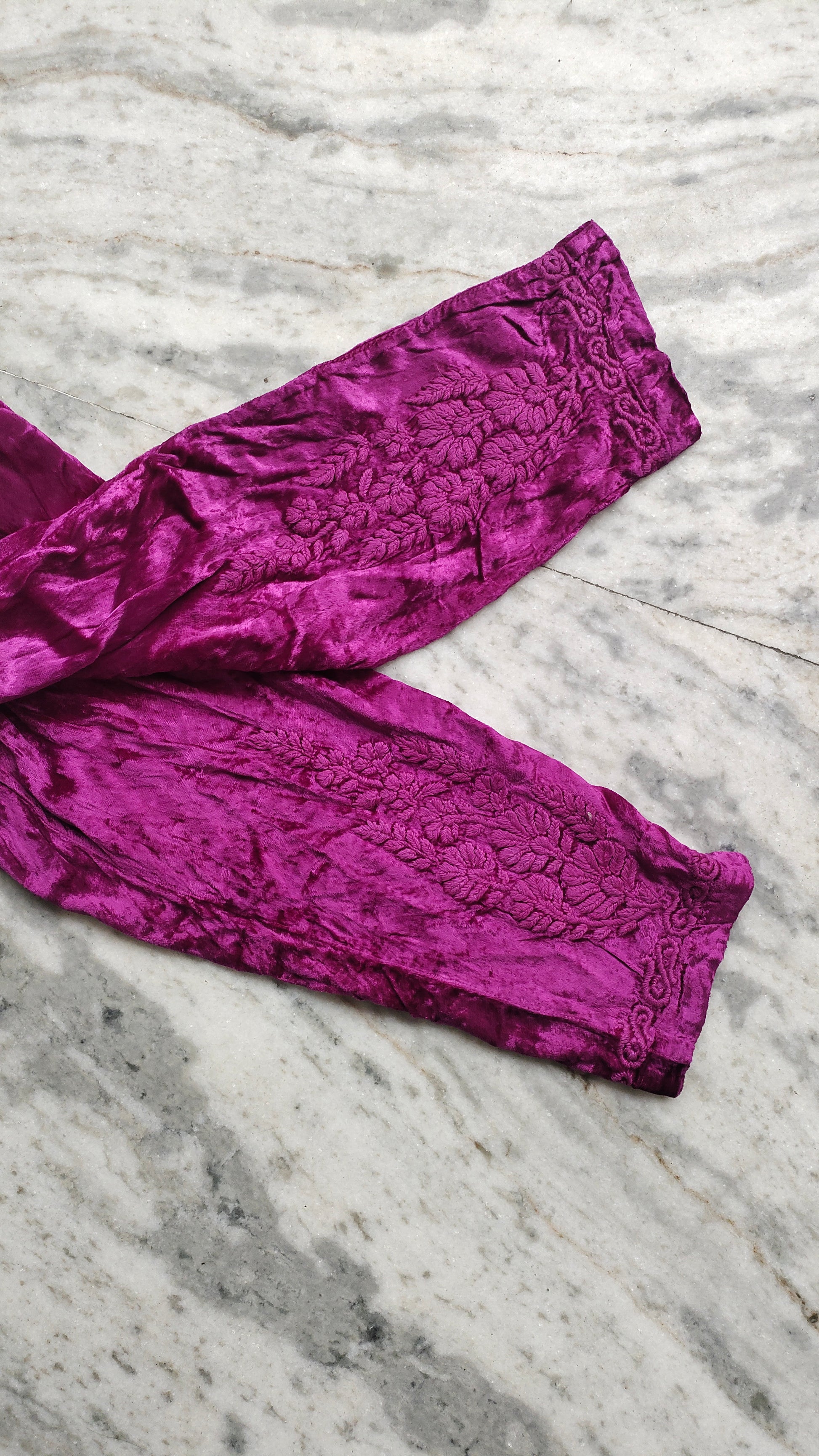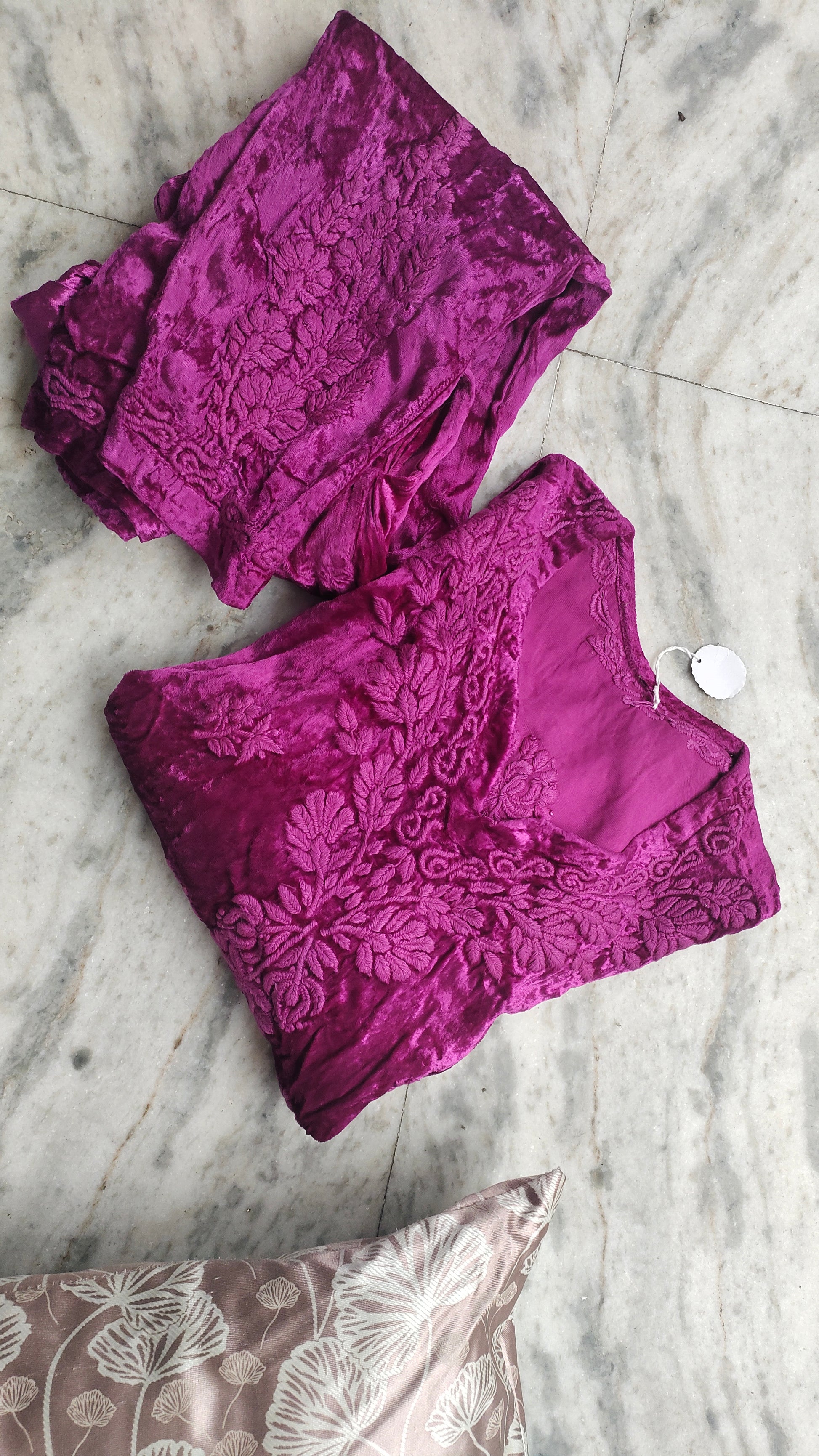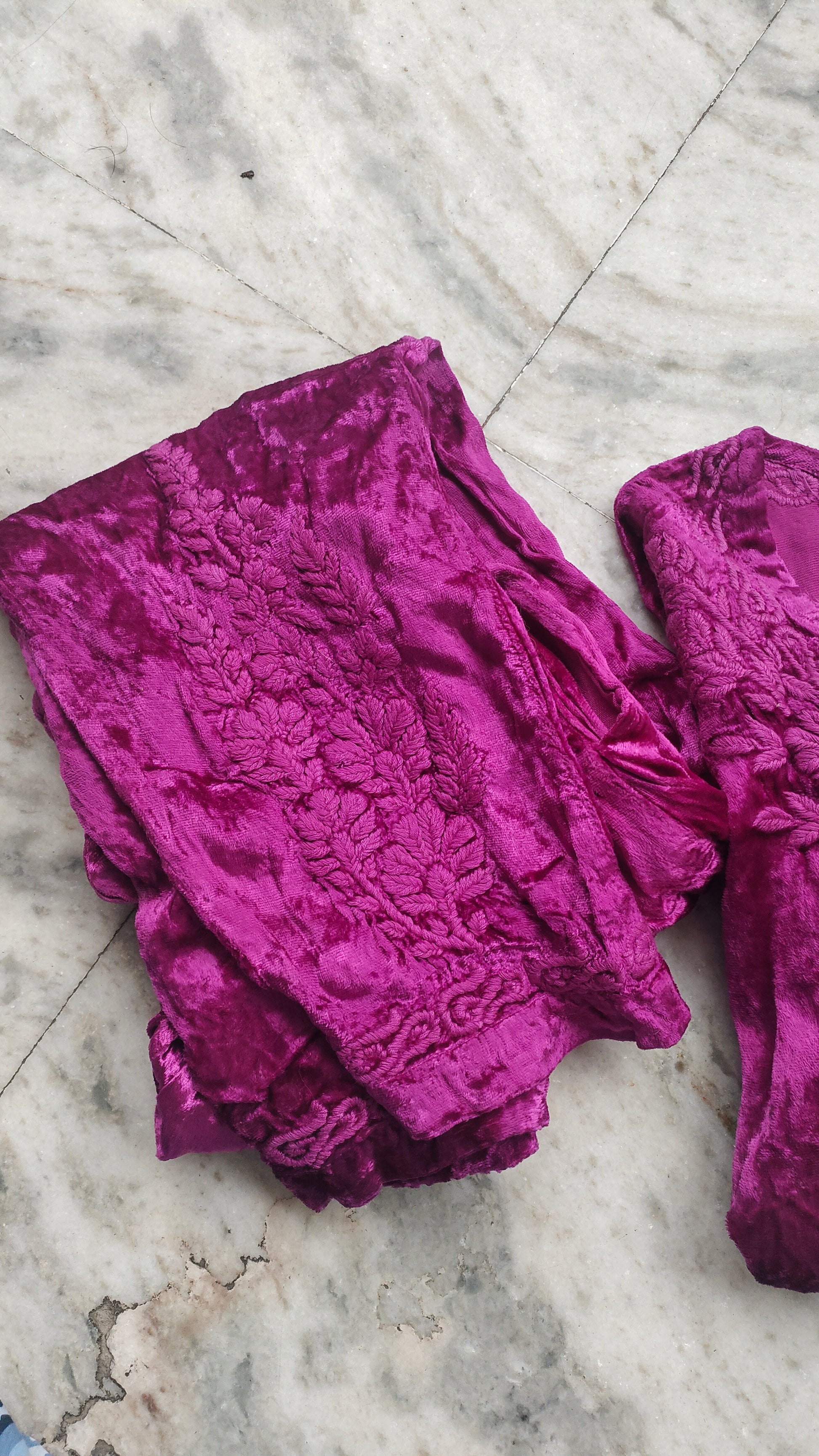 Candy Pink makhmal Chikankari Co-ord Set Luxurious Embroidery