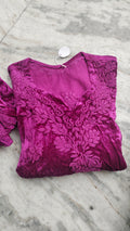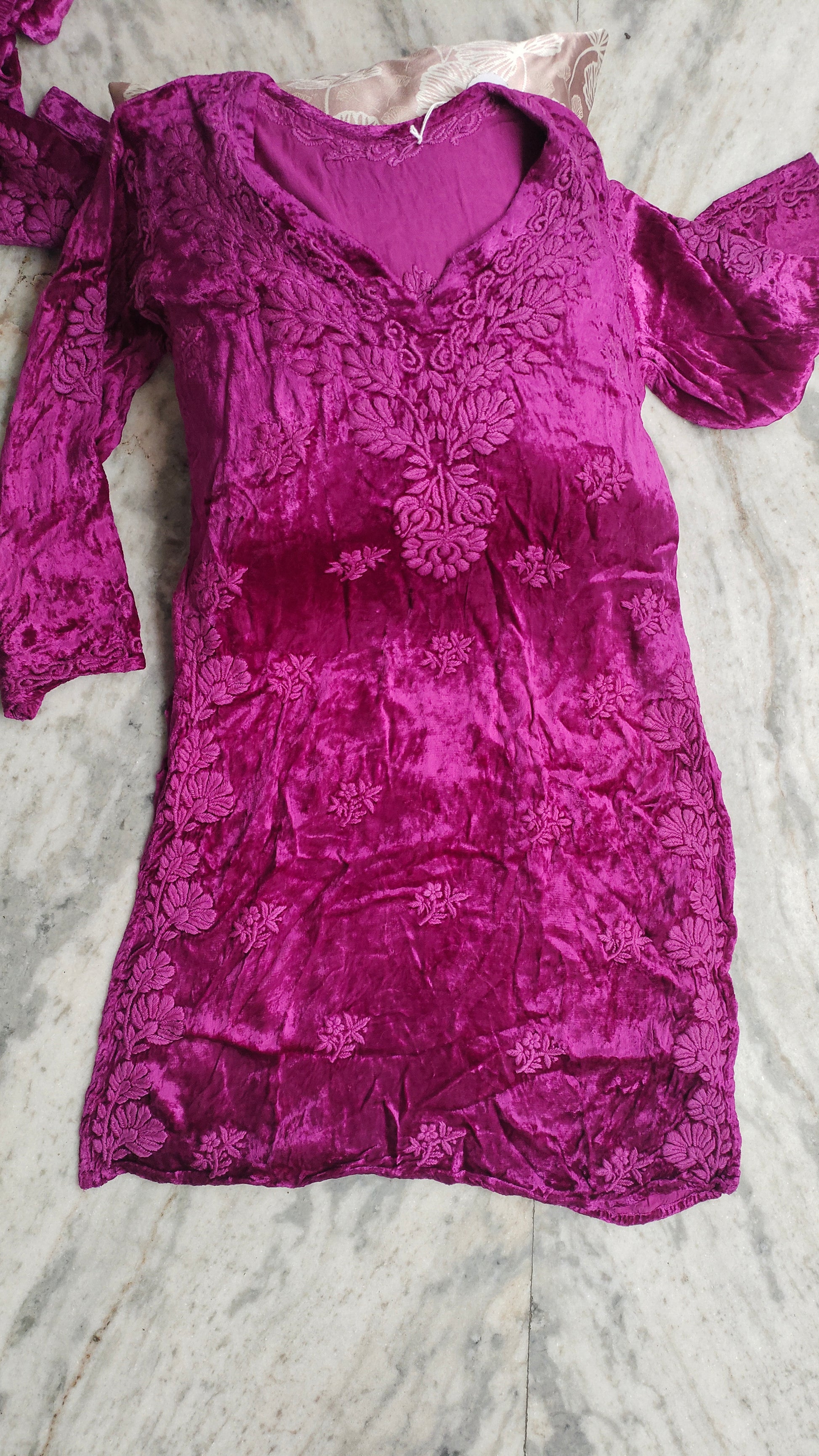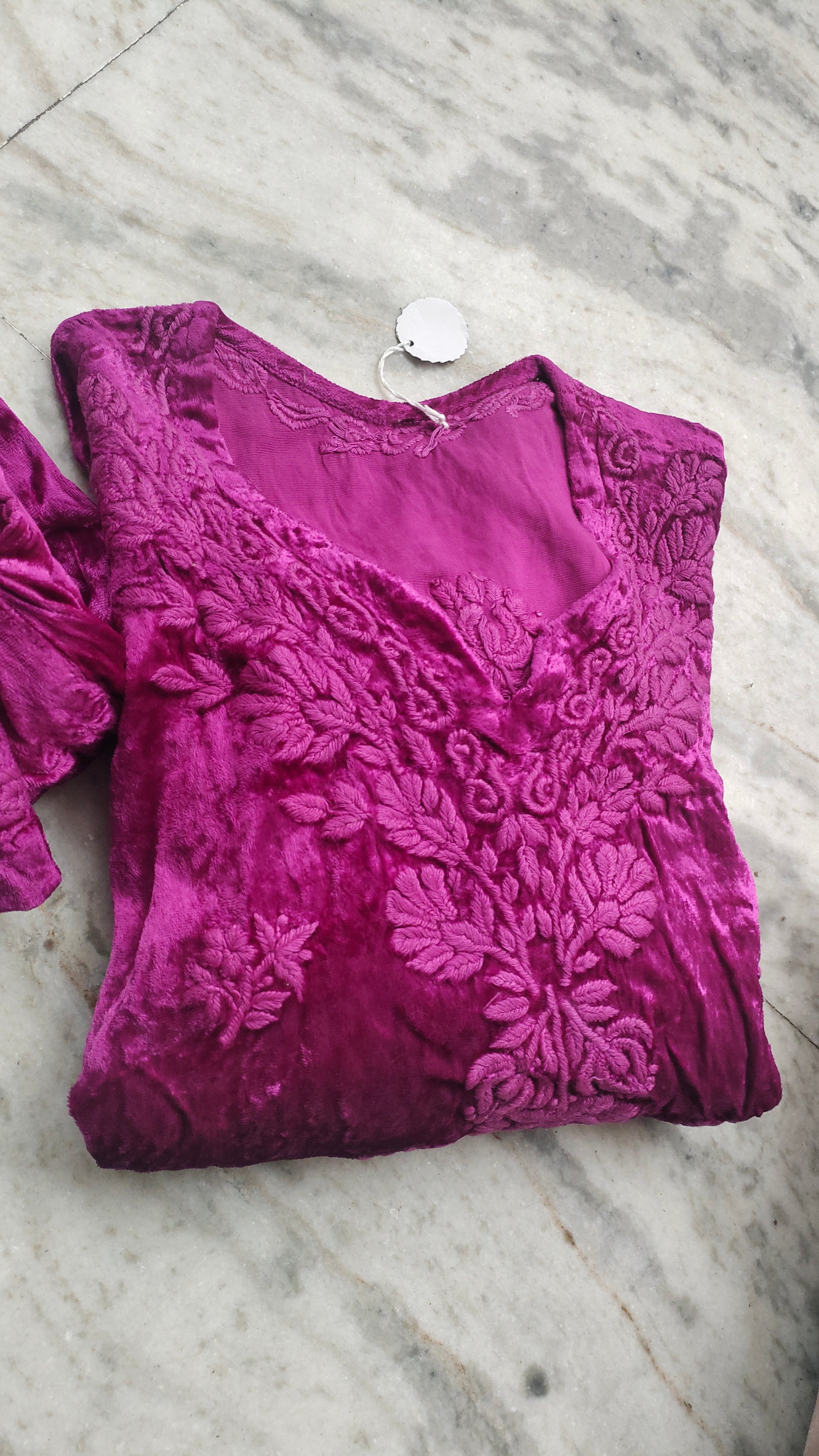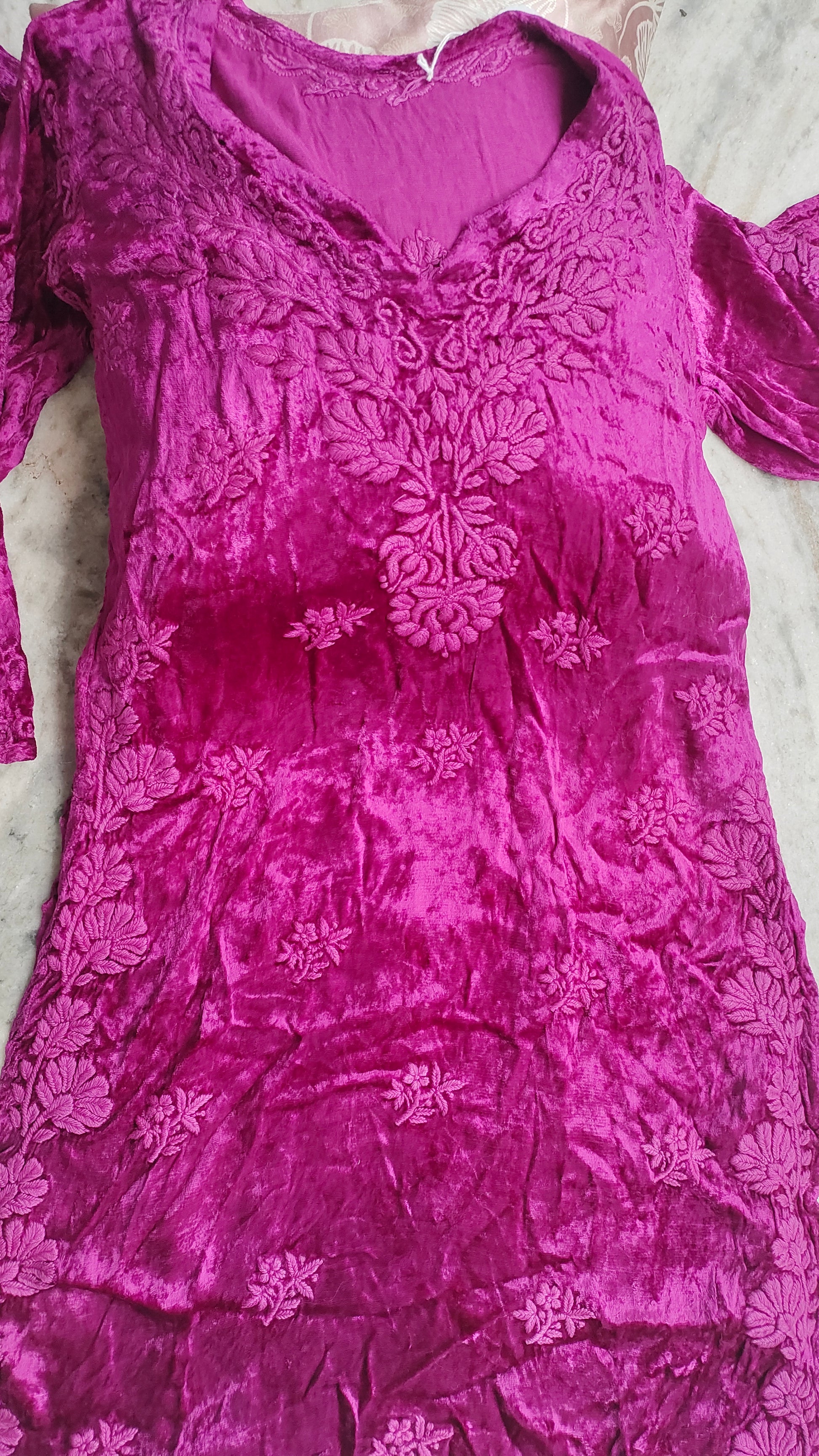 Candy Pink makhmal Chikankari Co-ord Set Luxurious Embroidery